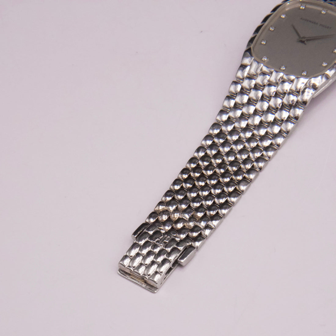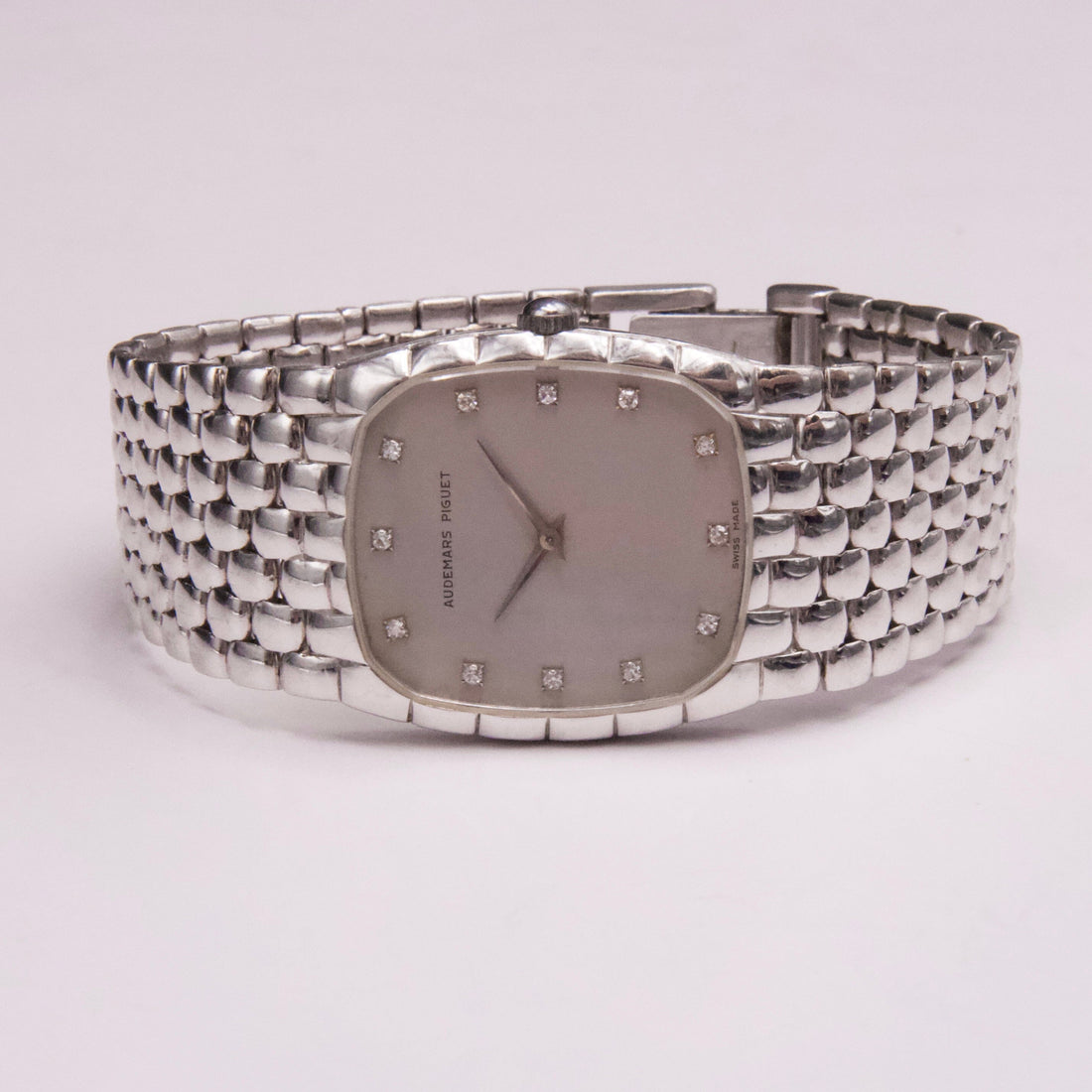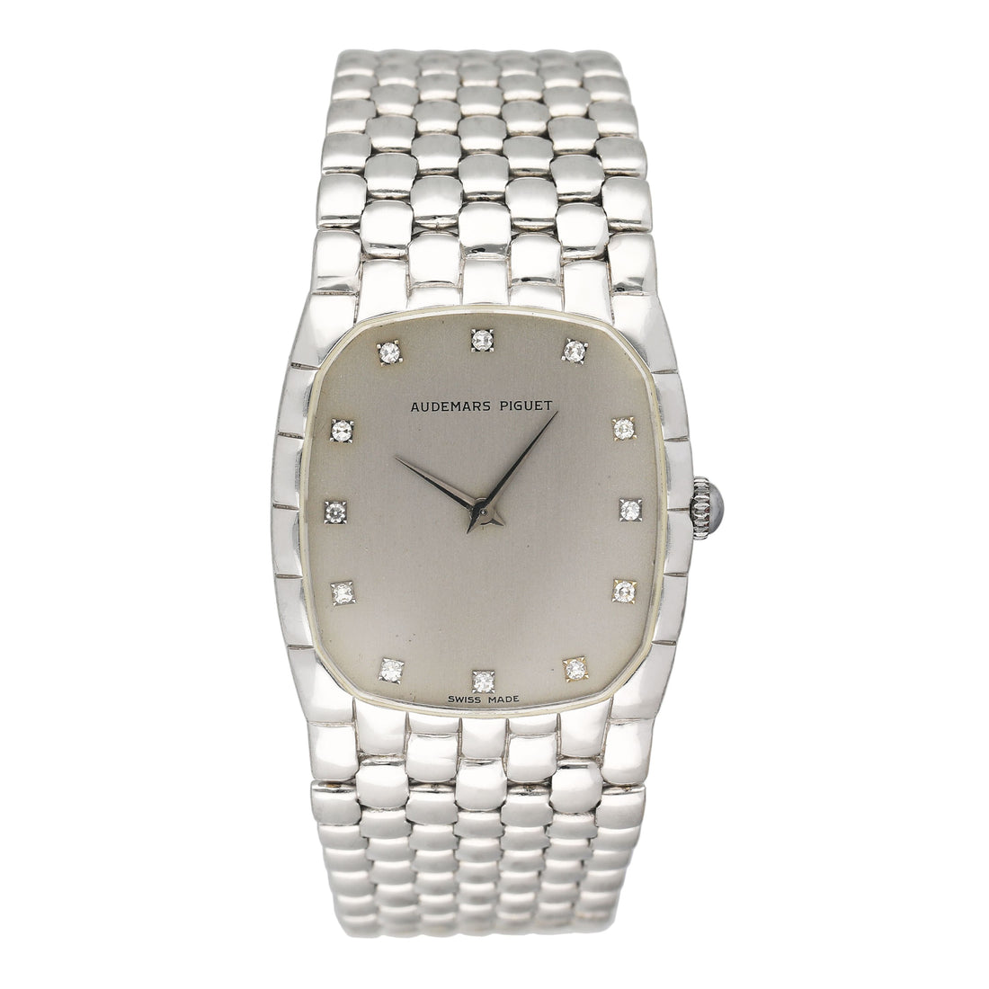 Audemars Piguet 14126.791 Ladies Watch. 27mm 18K white gold case. 18K white gold bezel. Silver dial with silver-tone hands and factory diamond hour marker. 18K white mesh bracelet with jewelry clasp. Will fit up to a 6.5-inch wrist. Acrylic crystal. 18K white gold case back. Mechanical hand-winding movement.
