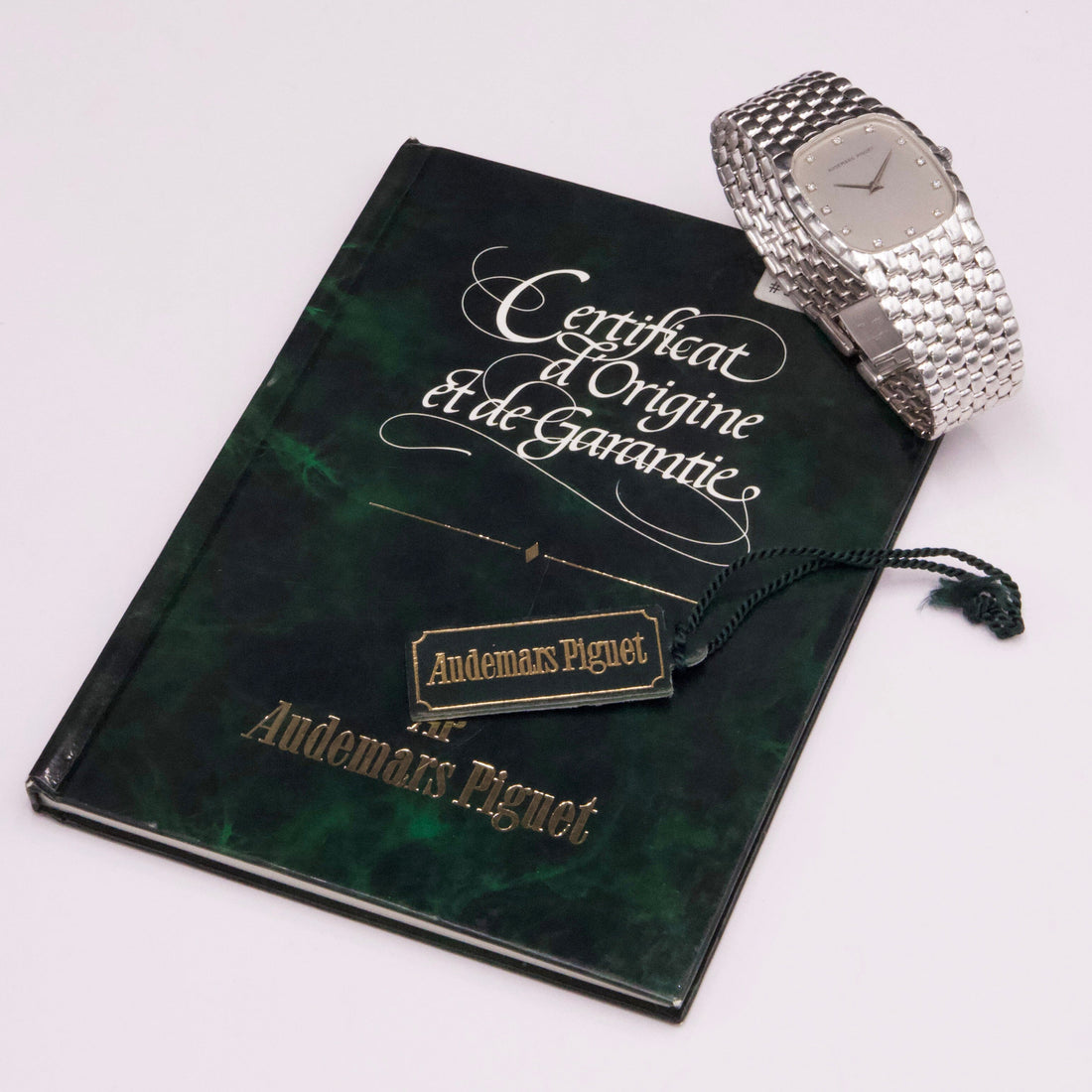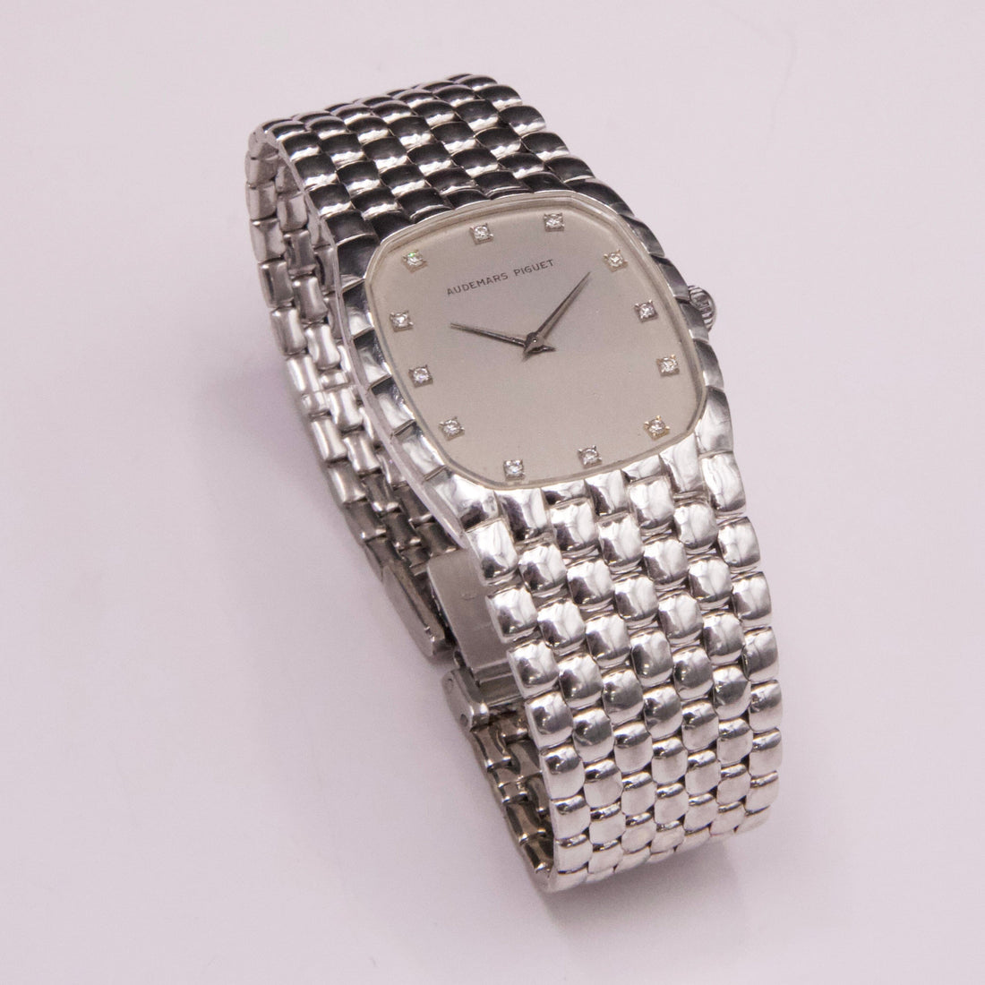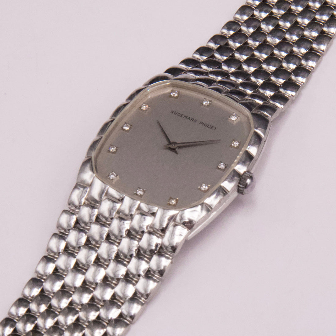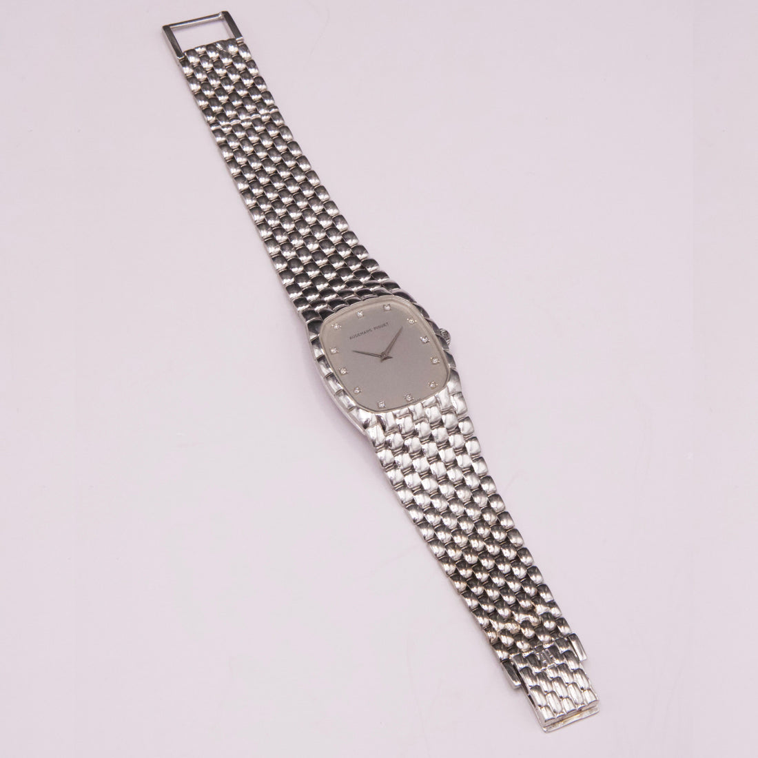 Audemars Piguet 14126.791 Ladies Watch. 27mm 18K white gold case. 18K white gold bezel. Silver dial with silver-tone hands and factory diamond hour marker. 18K white mesh bracelet with jewelry clasp. Will fit up to a 6.5-inch wrist. Acrylic crystal. 18K white gold case back. Mechanical hand-winding movement.