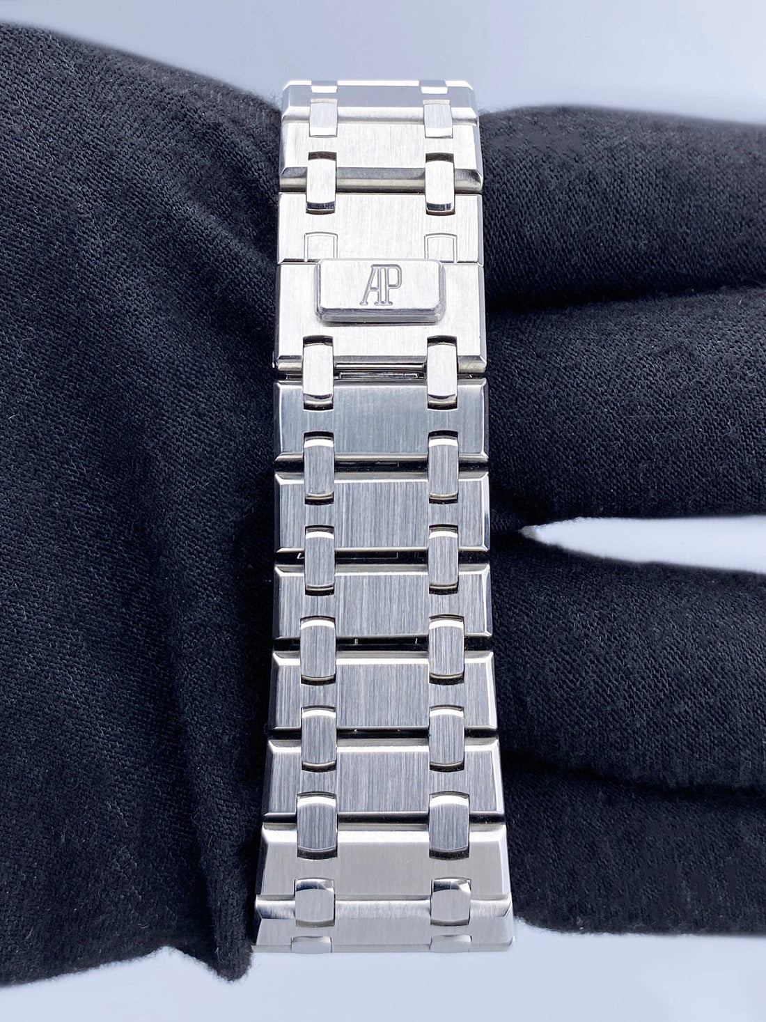 Audemars Piguet Royal Oak 25860ST.OO.1110ST.04 Mens Watch. 39mm stainless steel case. Stainless steel octagon bezel. Blue tapestry dial with steel luminous hands and index hour marker. Sub-dials: small second, minute and 12 hour. Date display between 4 & 5 o'clock position. Stainless steel bracelet with fold over clasp with single push button safety. Will fit up to 6-Inch wrist. Sapphire crystal. Stainless steel case back. Automatic self-winding movement.