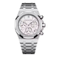 Audemars Piguet Royal Oak 26240ST.OO.1320ST.03 Mens Watch. 41mm stainless steel case with octagon shaped bezel. Silver Tapisserie dial with luminous steel hands and index hour markers. Date display between 4 & 5 o'clock. Three black sub-dials. Small seconds hand at 6 o'clock. 30-minute counter at 9 o'clock. 12-hour counter at 3 o'clock. Stainless steel bracelet with fold over clasp with hidden double push button. Will fit up to a 7.5-inch wrist. Sapphire crystal. Transparent sapphire crystal case back. Automatic self-winding movement. This watch comes with original Box and Papers.