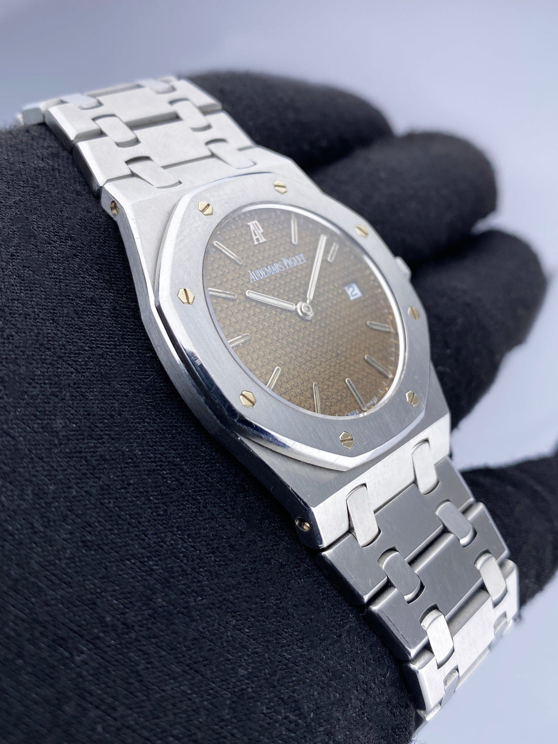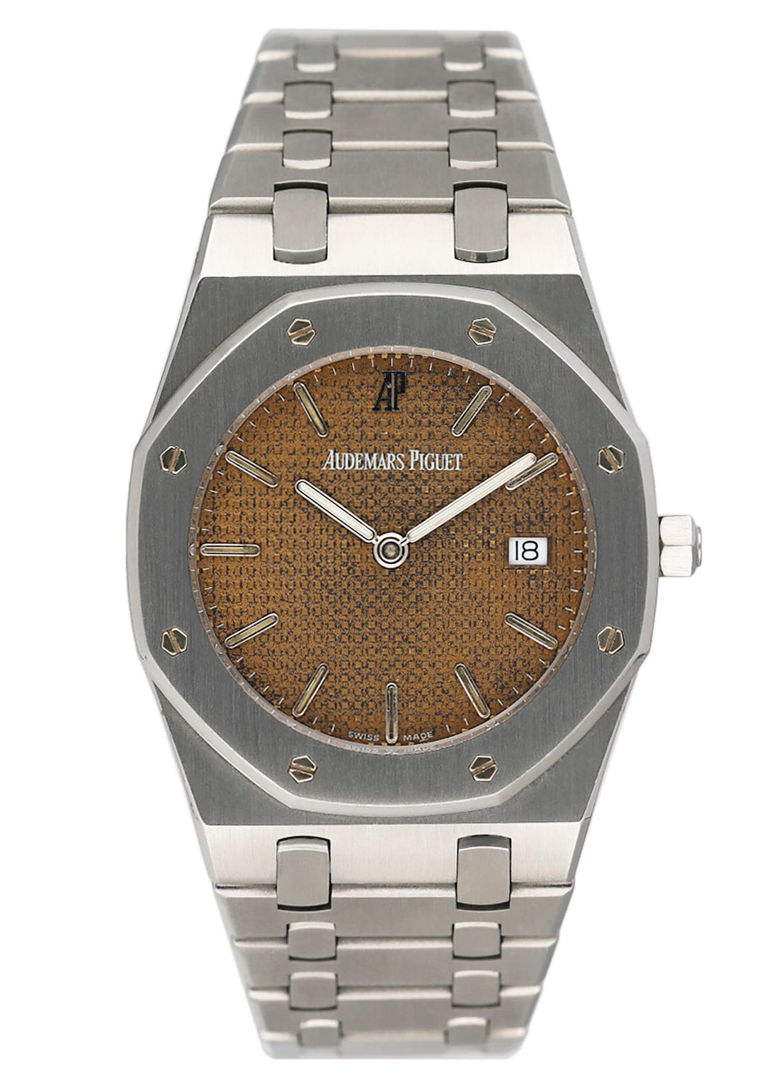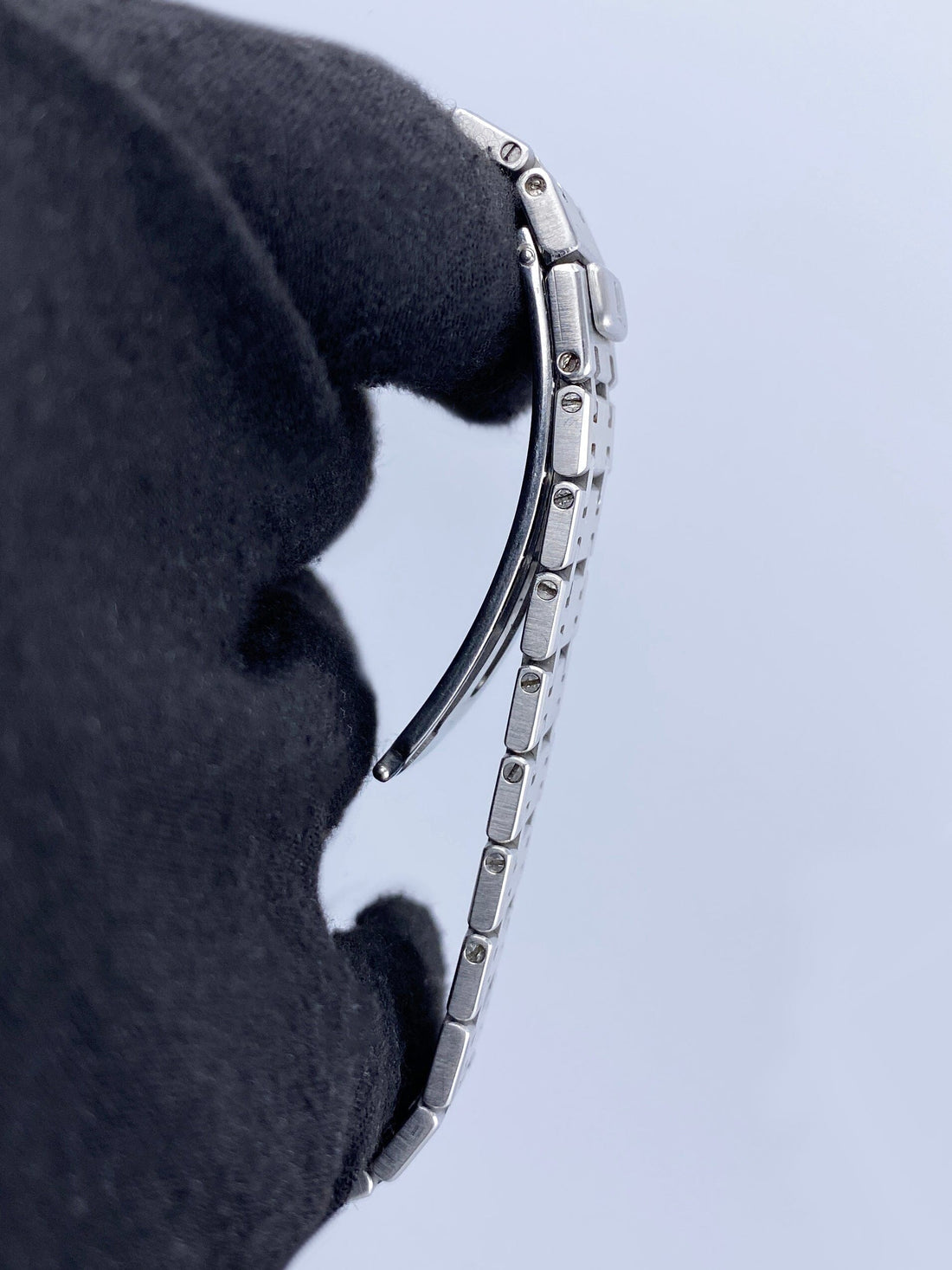 Audemars Piguet Royal Oak 56175ST Ladies Watch. 33mm stainless steel case. Stainless steel octagon-shaped bezel. Topical tapisserie pattern dial with silver-tone hands and index hour markers. The date is displayed at 3 o'clock position. Stainless steel bracelet with fold-over clasp with single push-button. Will fit up to a 7-inch wrist. Sapphire crystal. Stainless steel case back. Quartz: Battery powered movement.