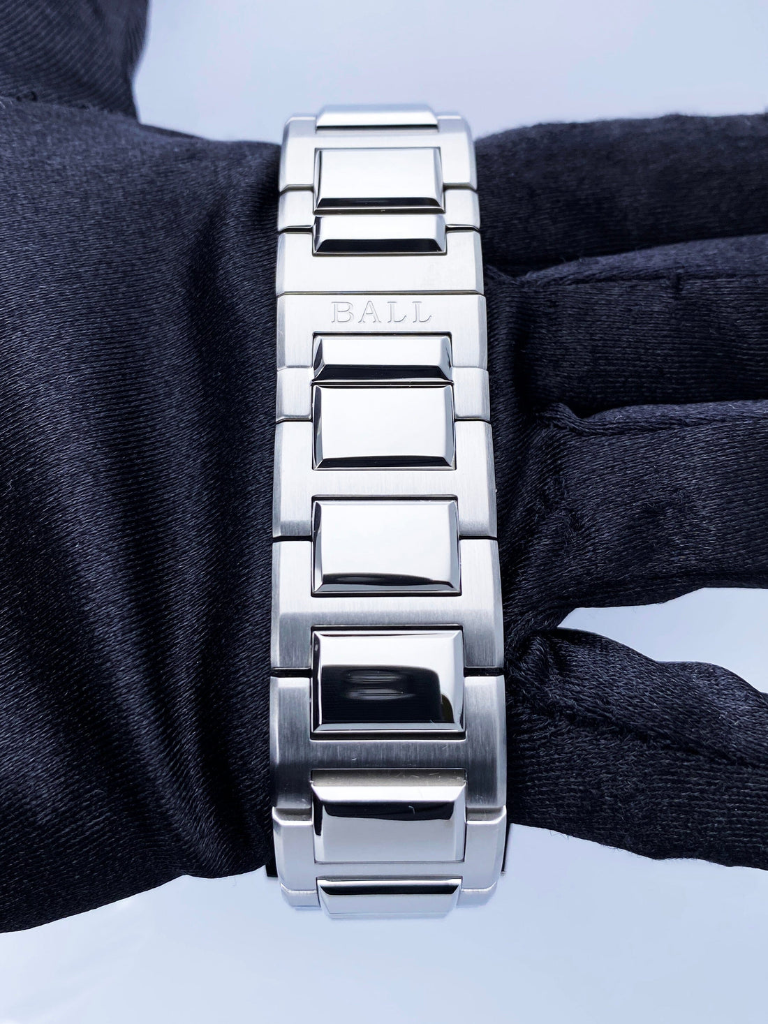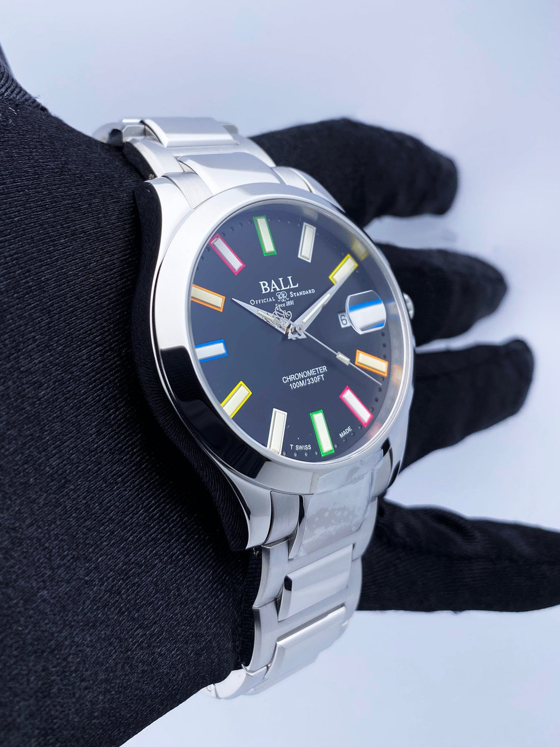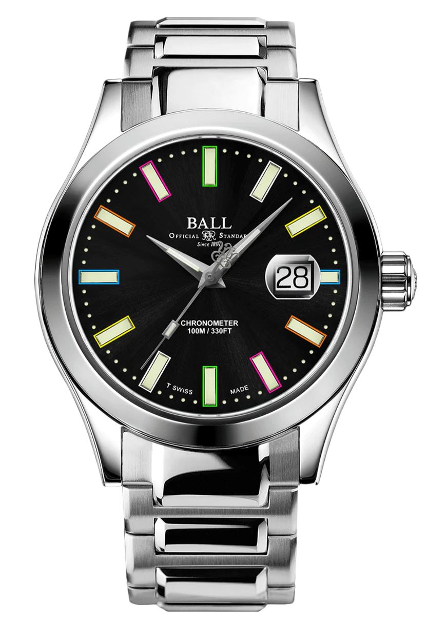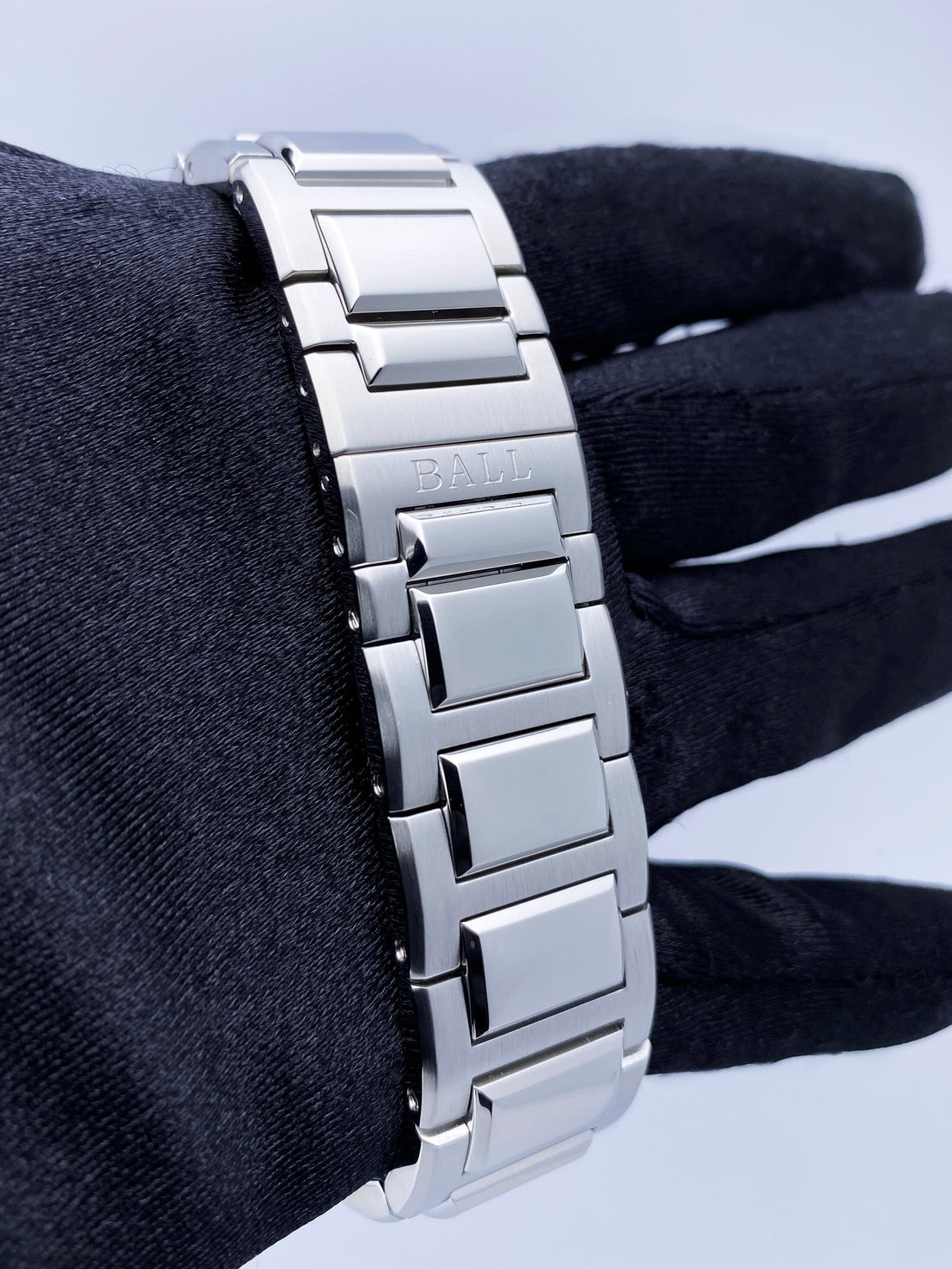 Brand New. BALL Engineer III Marvelight Chronometer Caring Edition NM9028C-S29C-BK Mens Watch. 43mm stainless steel case with stainless steel smooth bezel. Black dial with luminous steel hands and index hour marker. Date display at 3 o'clock position. Stainless steel bracelet with hidden butterfly clasp. Will fit up to a 7-inch wrist. Sapphire crystal. Stainless steel case back. Automatic caliber BALL RR1103-C self-winding movement. This watch comes with original Box and Papers.