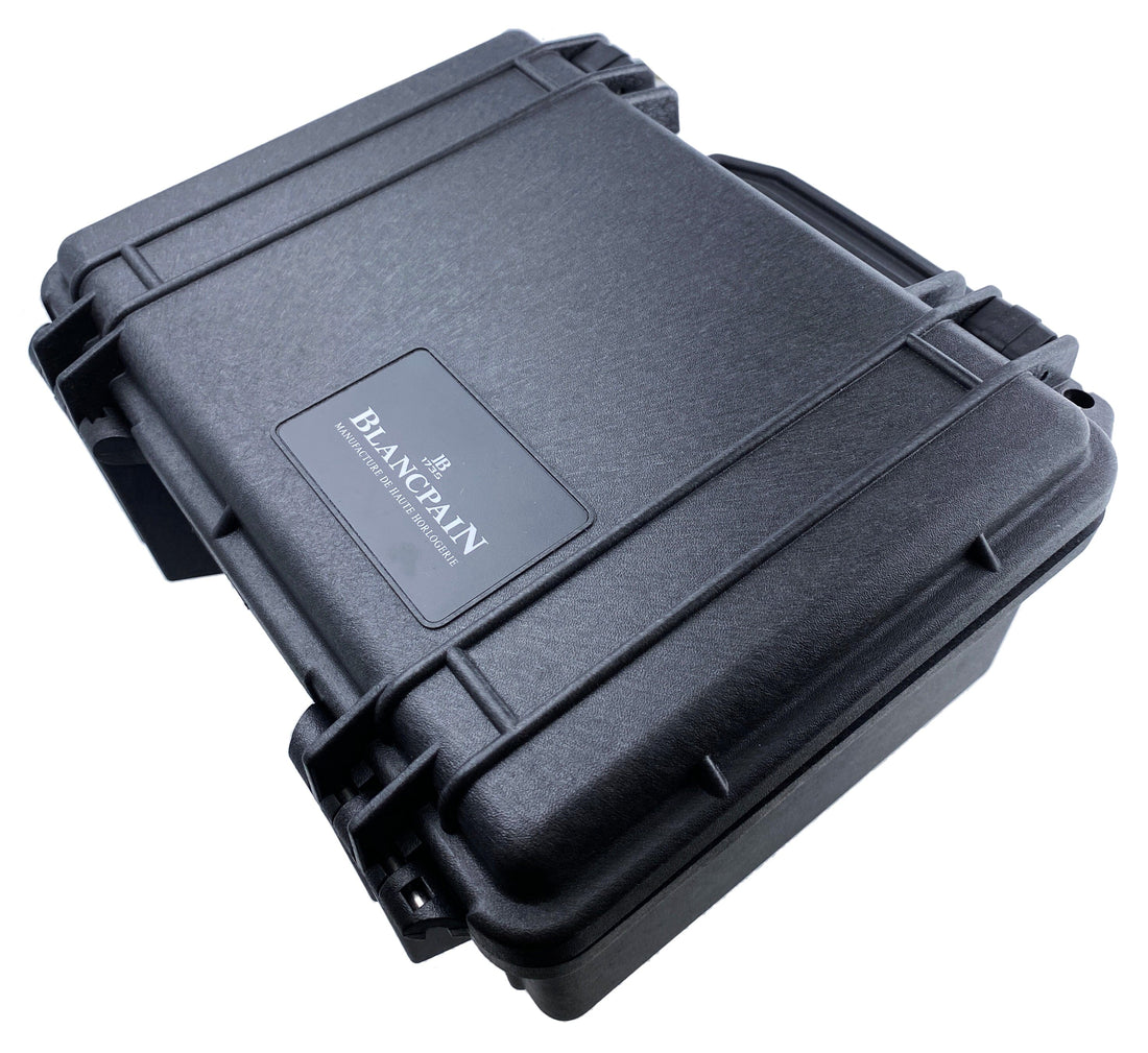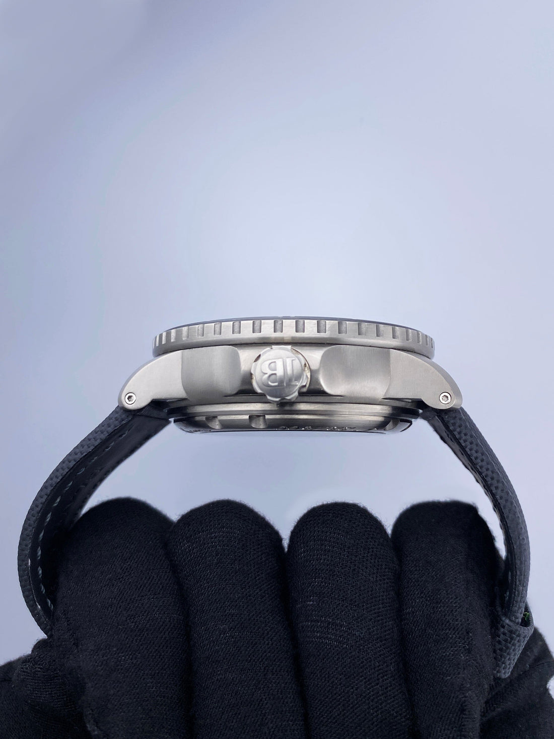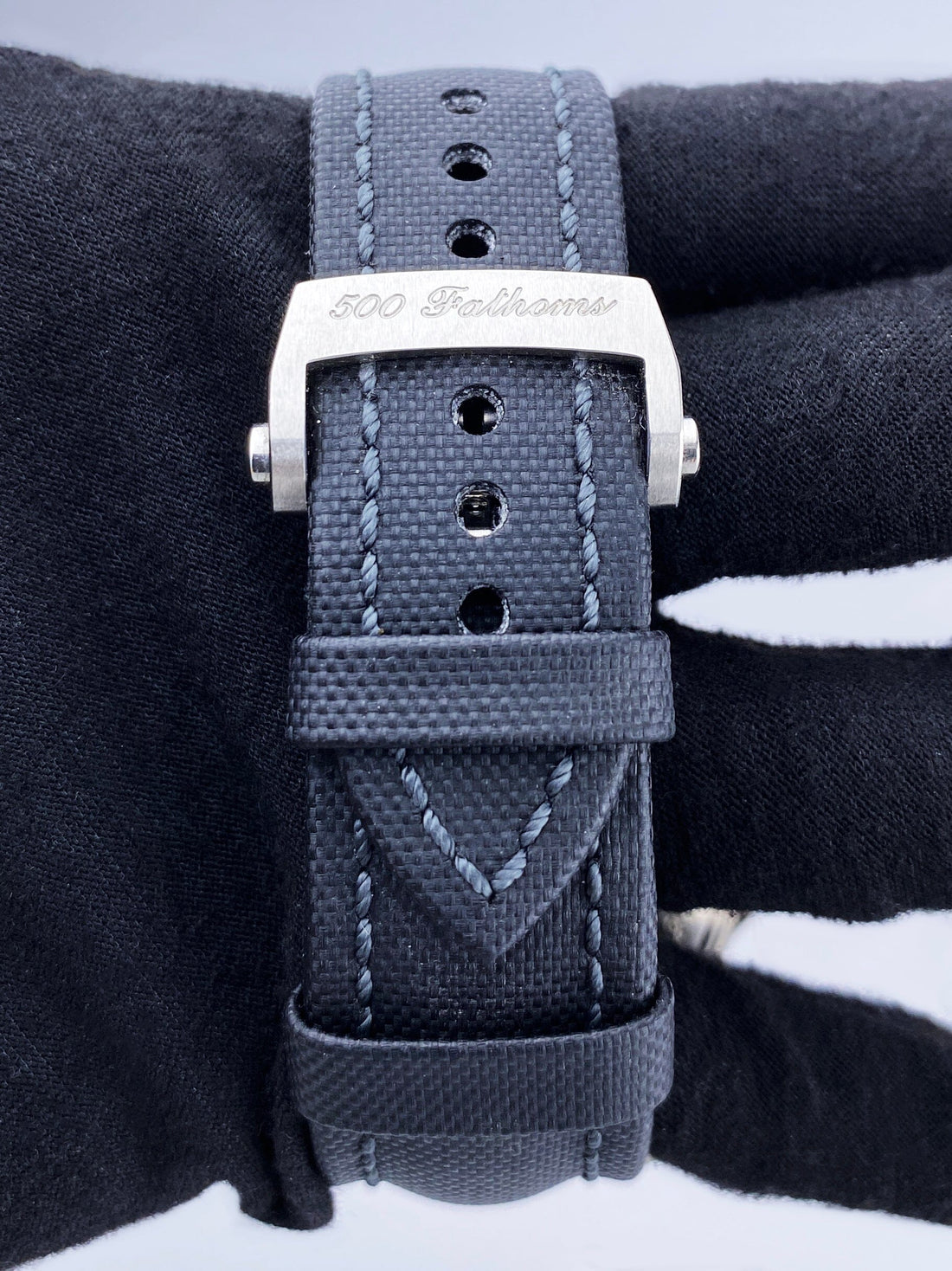 Blancpain 500 Fathoms GT 50021-12B30-52B Mens Watch. 48mm titanium case. Unidirectional rotating titanium bezel with black insert. Black dial with luminous hands and Arabic numeral & index hour markers. Date is displayed 3 o'clock position. Black sail-canvas fabric strap with stainless steel deployment buckle. Will fit up to 8-Inch wrist. Sapphire crystal. Transparent sapphire crystal case back. Caliber 5215 automatic self-winding movement. This watch comes with original Box and Papers.