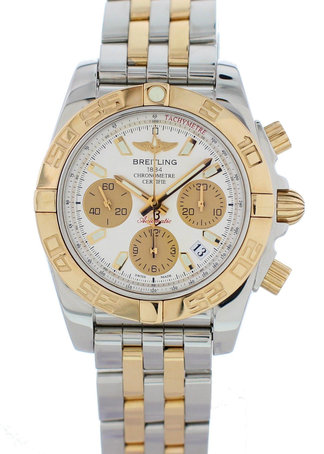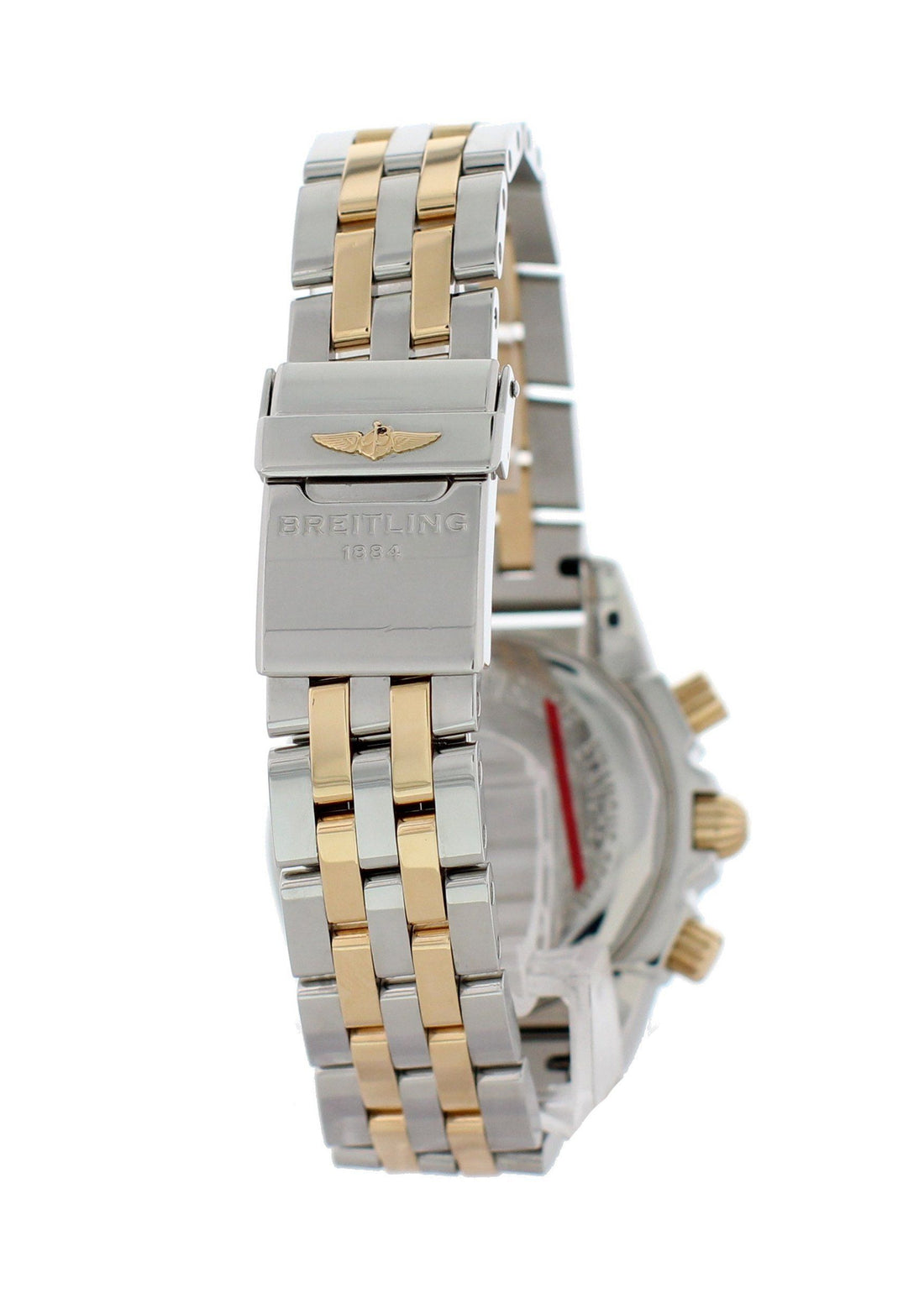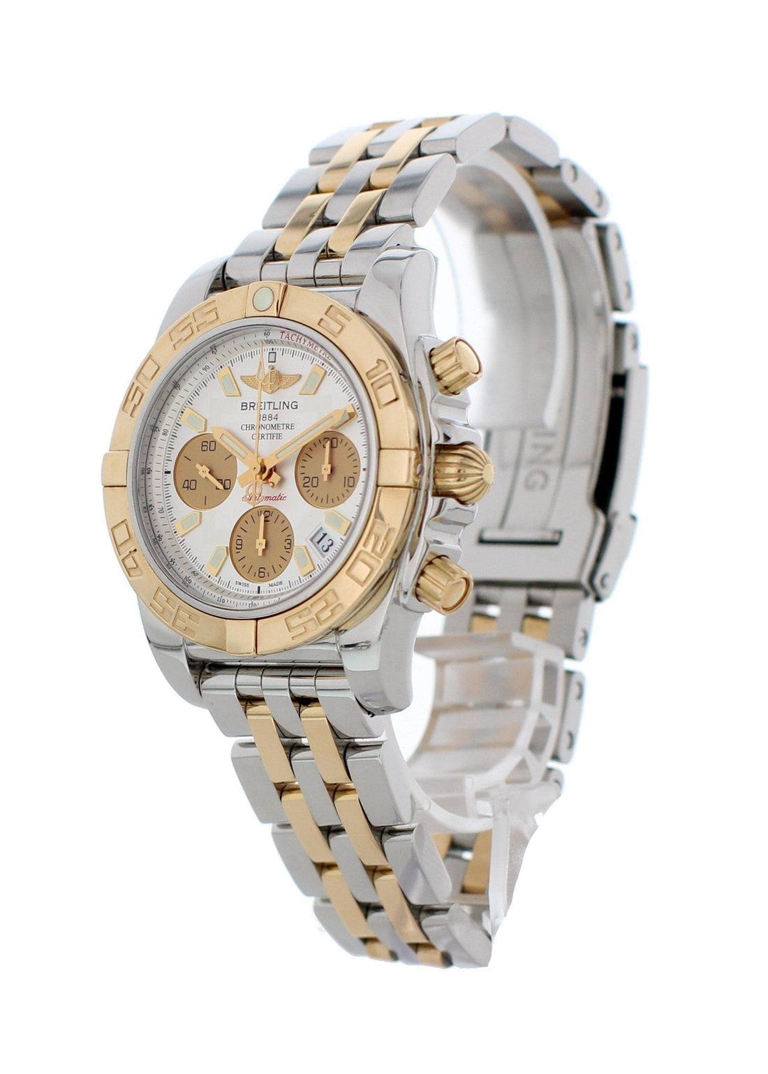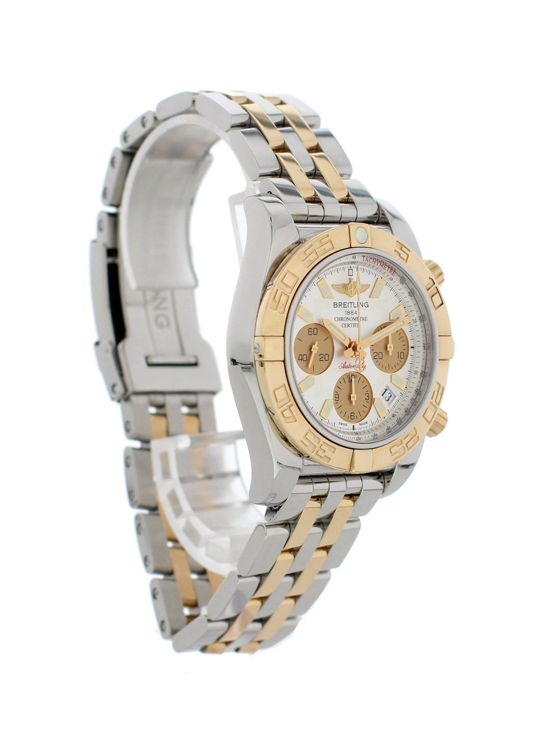 Breitling Chronomat CB0140 Men watch. 41 Stainless Steel case. Rose Gold Unidirectional bezel. Silver dial with Luminous gold hands and index hour markers Minute markers on the outer dial. Date display at the between the 4 & 5 o'clock position. Two Tone Stainless Steel Bracelet with a Stainless Steel Fold Over Clasp With Safety. Will fit up to a 7 inch wrist. Sapphire Crystal. Stainless steel case back. B01 Automatic co-axial movement with a 70-hour power reserve. Original box and papers included. This watch is backed by our two year warranty.