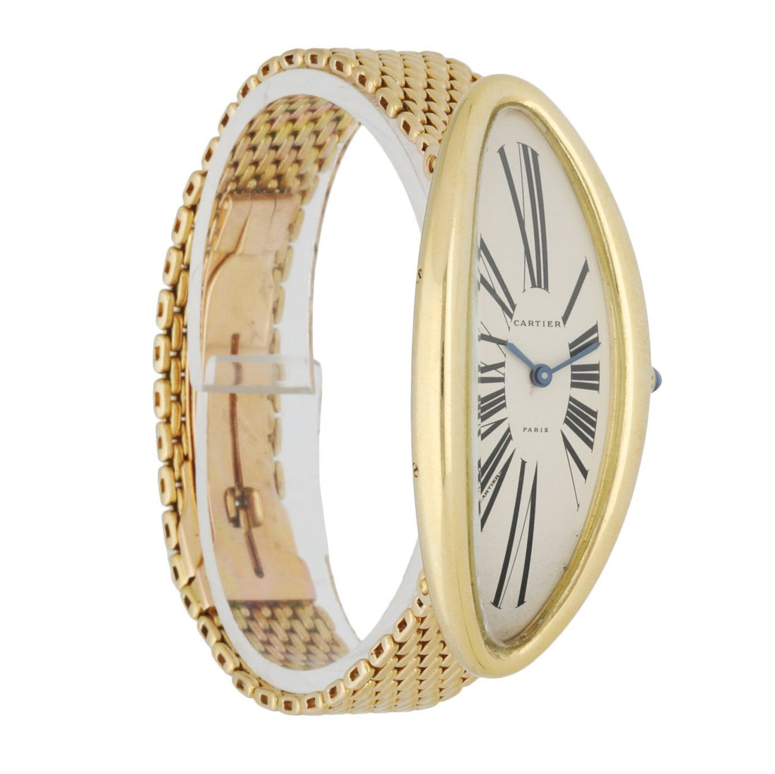 Cartier Baignoire Allongee W1507451 "Maxi Oval" 18K Yellow Gold Rare Man's Watch