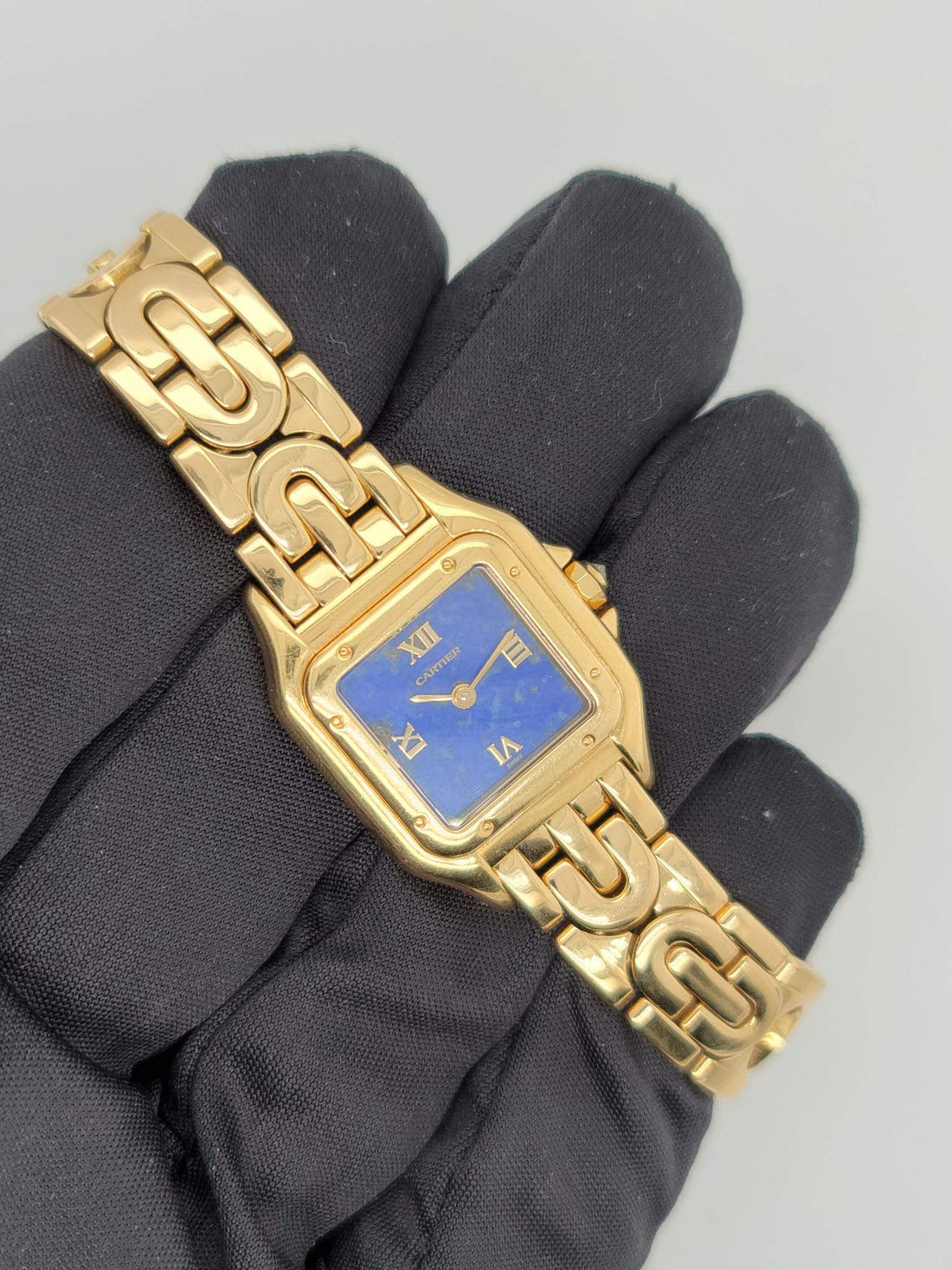 Cartier Panthere 1280/2 Blue Lapis Dial Art Deco Yellow Gold Ladies Watch