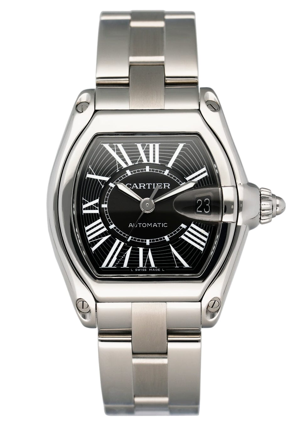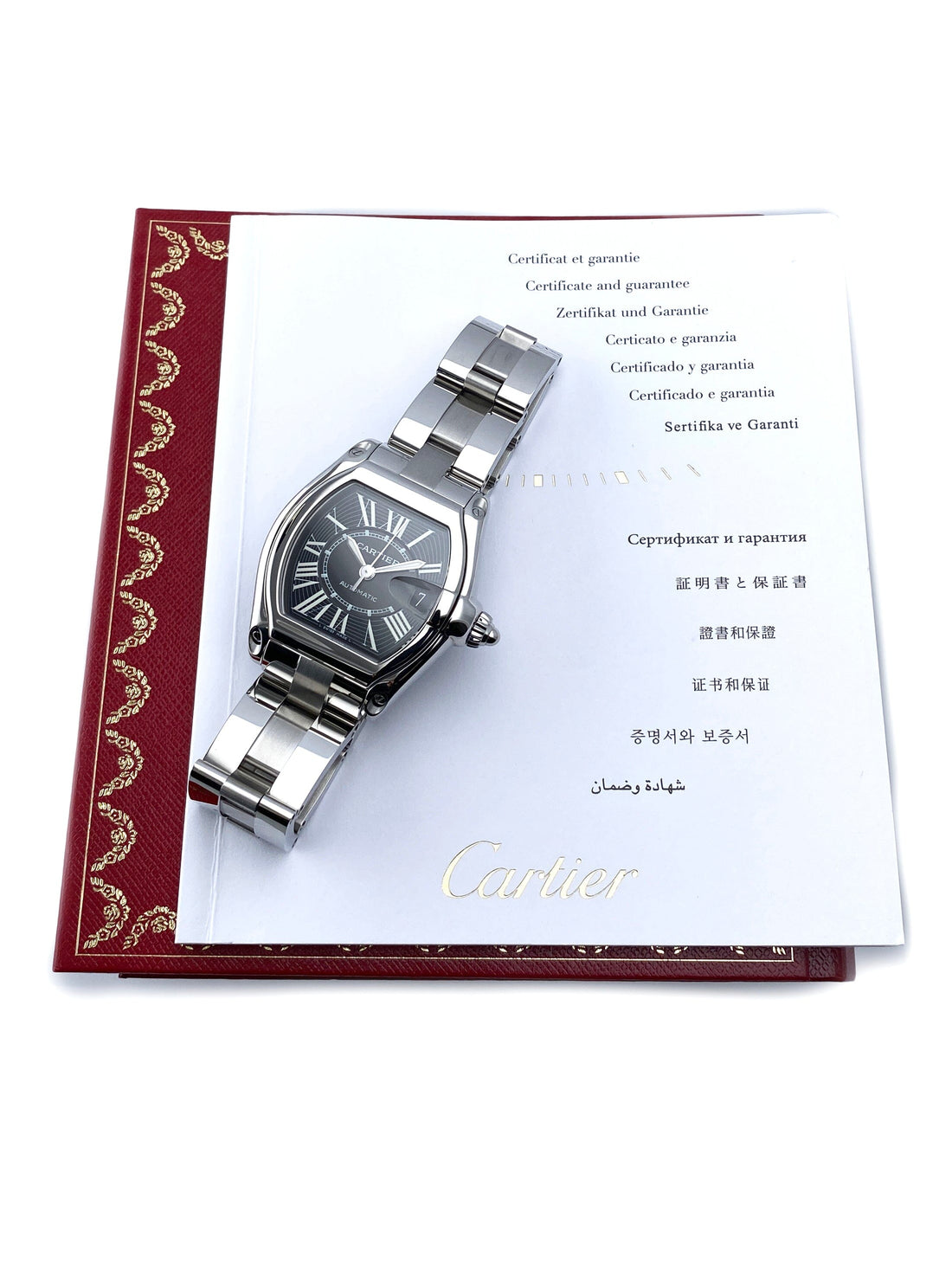 Cartier Roadster W62041V3 Black Dial Steel Mens Watch Box Papers