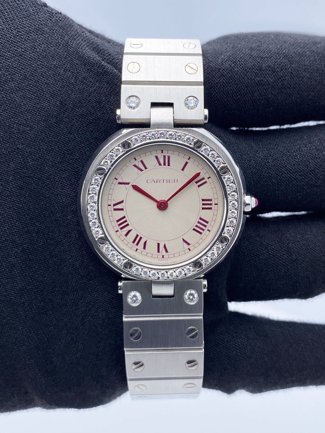 Rare Cartier Santos Vendôme OG Red Dial Platinum Ladies Watch