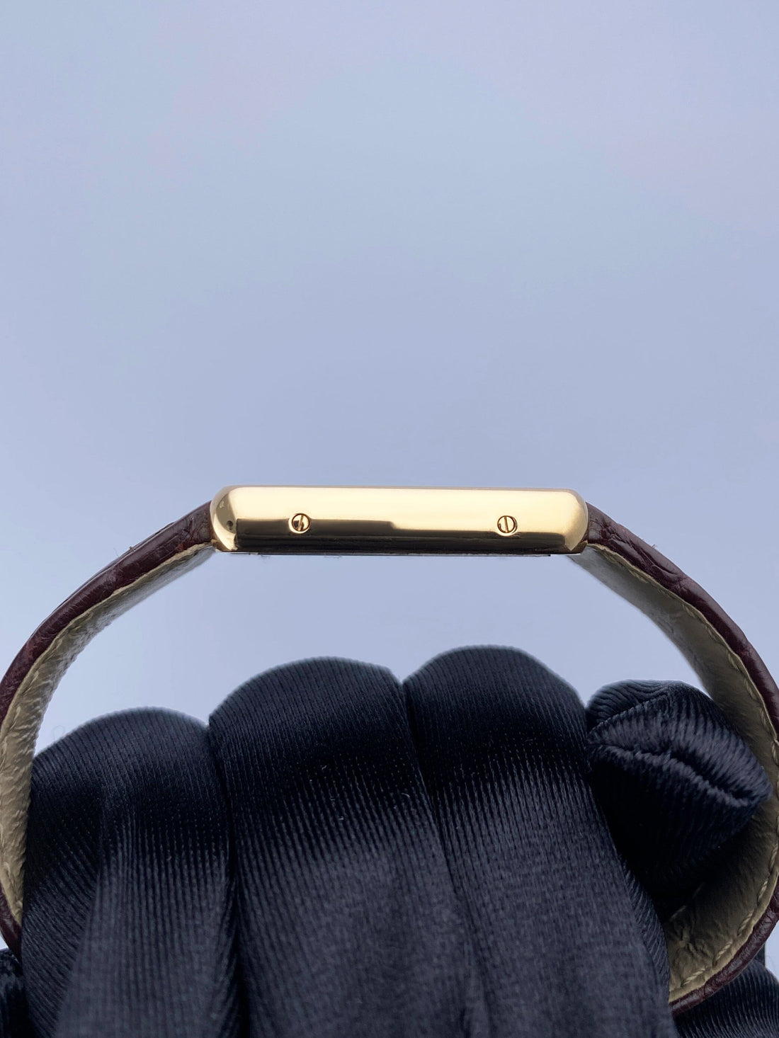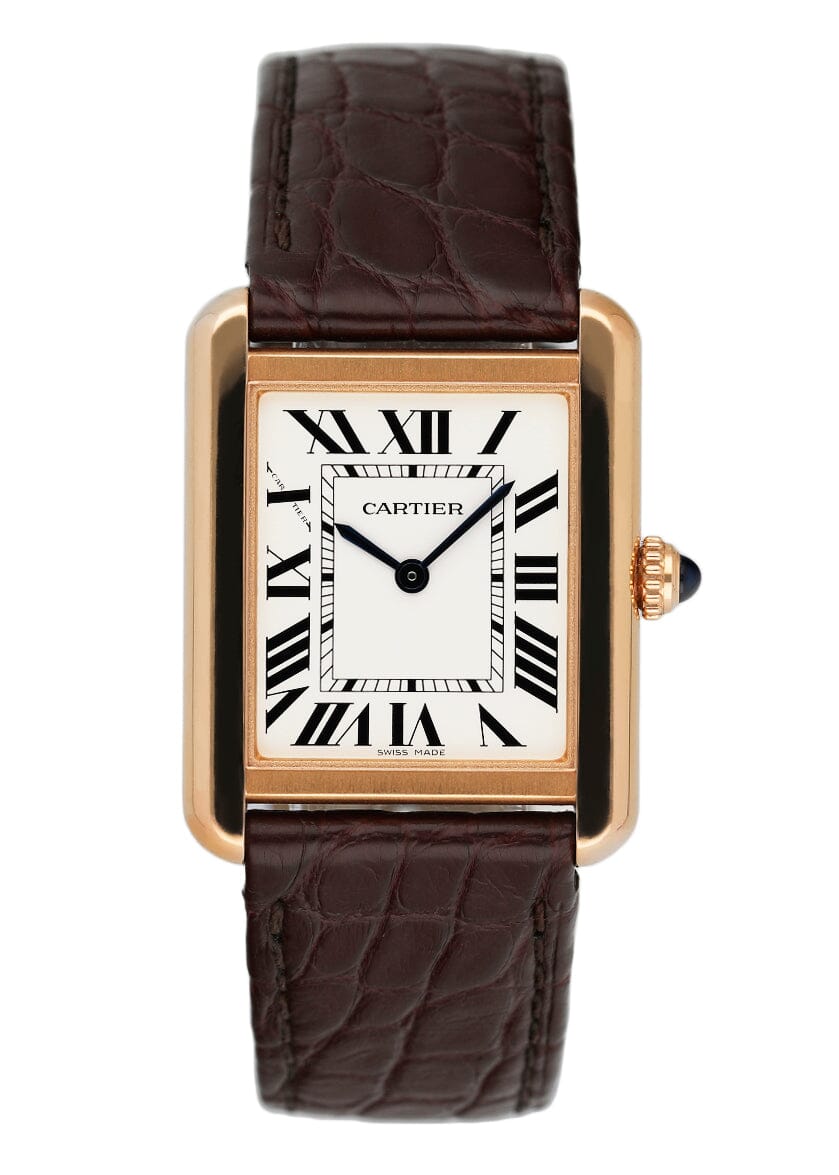 Cartier Tank Solo W5200024 / 3168 Watch. 24mm 18K rose gold case. Sliver dial with blue steel hands and Roman numeral hour markers. Minute markers on the inner dial. Brown leather strap with 18K rose gold buckle. Will fit up to a 6-inch wrist. Sapphire crystal. Stainless steel case back. Quartz: Battery powered movement. This watch comes with original Box and Papers.