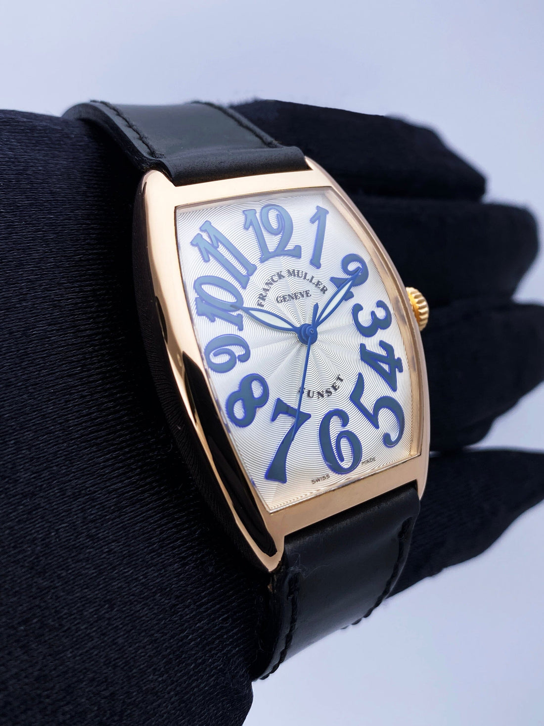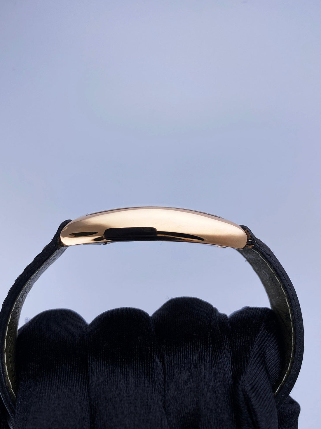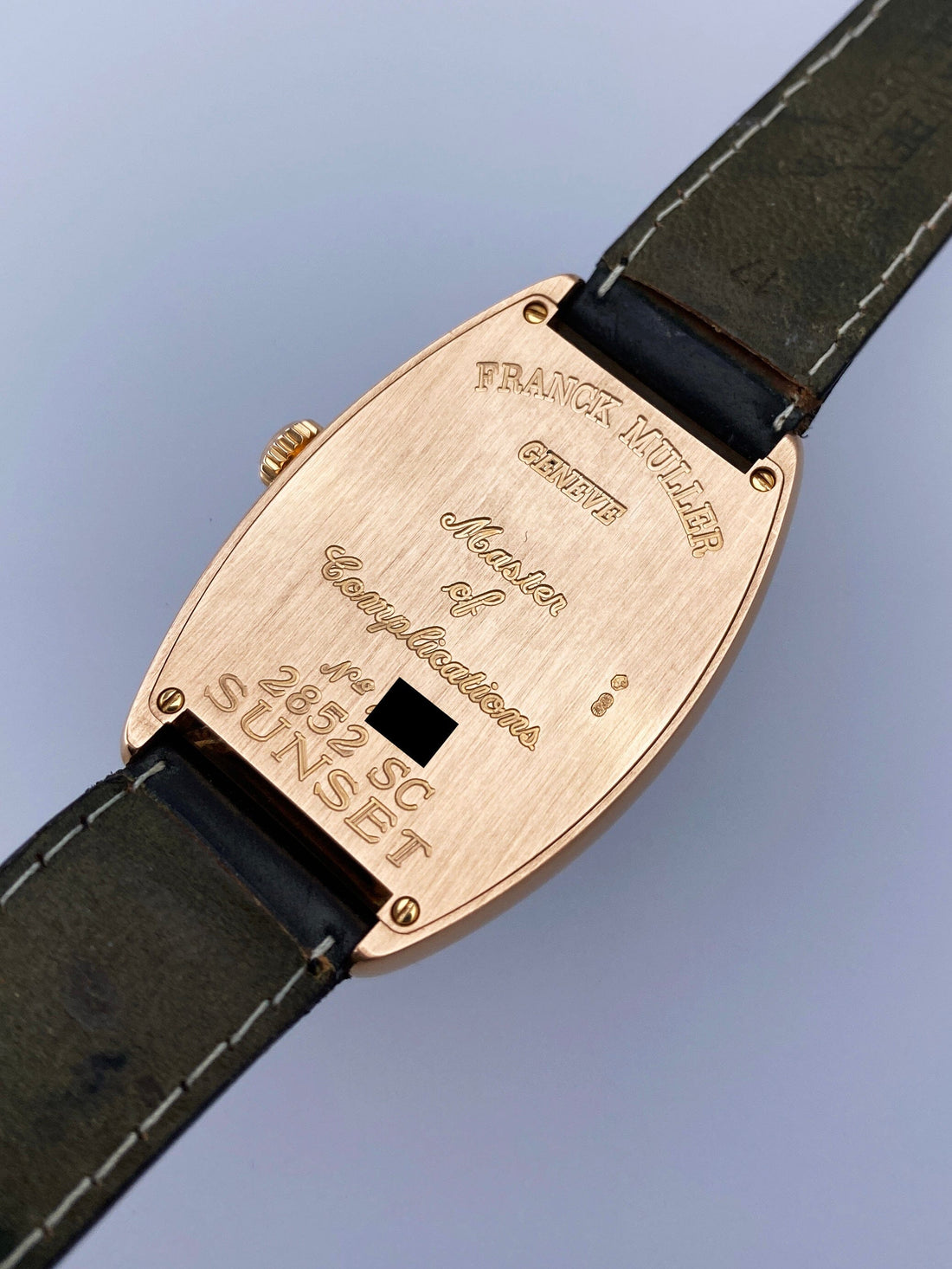 Franck Muller Master of Complications 2852 SC Watch. 31mm 18K rose gold case. 18K rose gold smooth bezel. Sliver dial with blue steel hands and Arabic numeral hour markers. Black leather strap with 18K rose gold buckle. Will fit up to a 7.5-inch wrist. Sapphire crystal. 18K rose gold case back. Automatic self-winding movement.