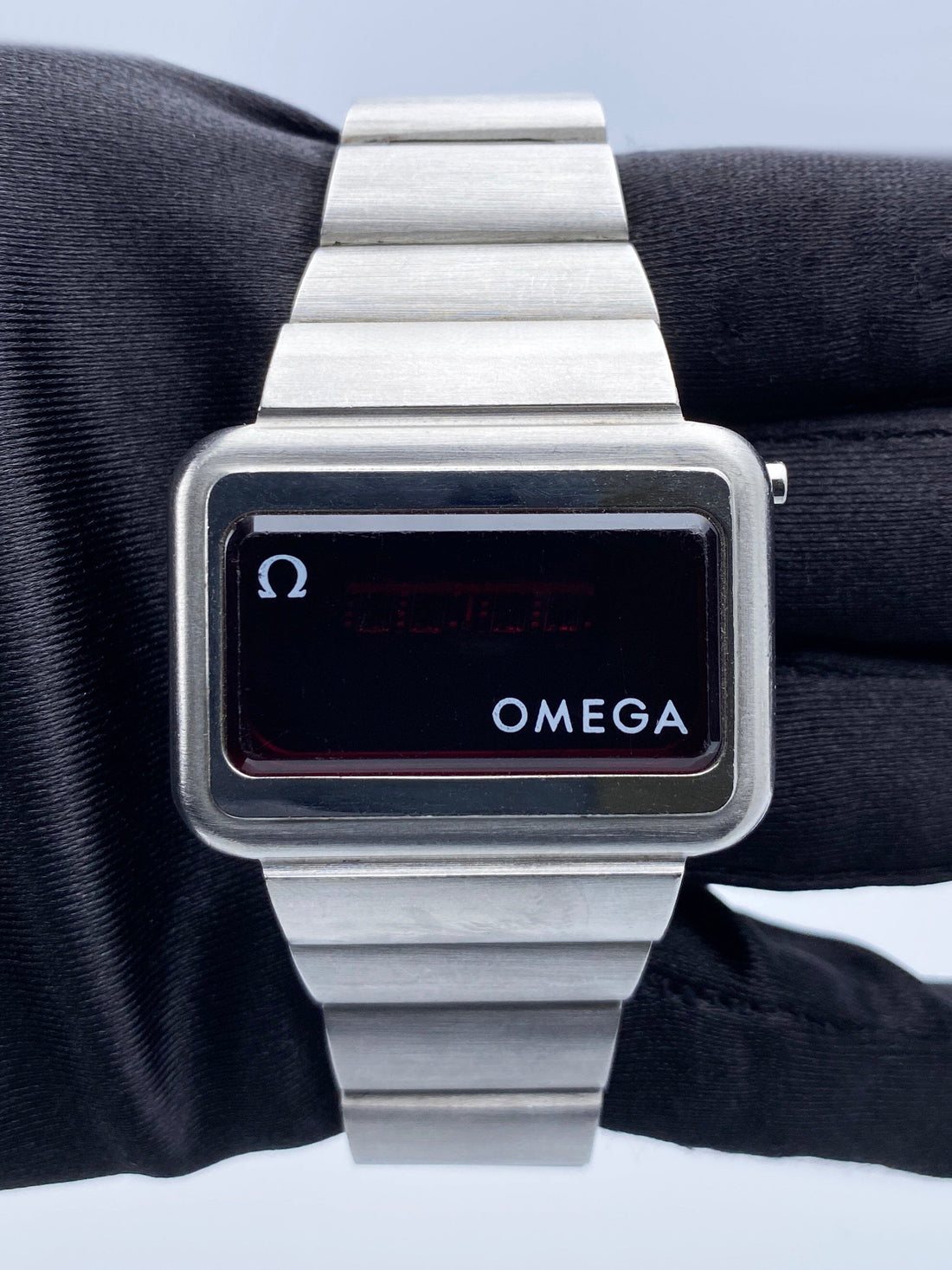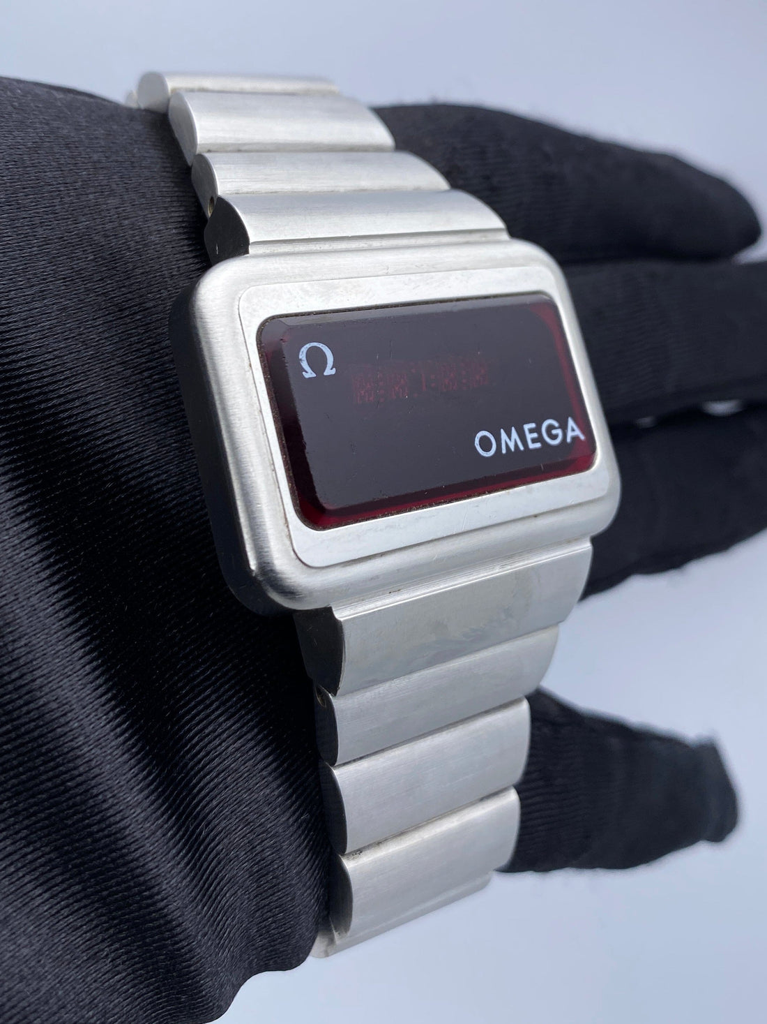 Omega Constellation Digital I 1974 / Time Computer III Mens Watch. 38mm stainless steel case. Dial with red LED-display. Ruby-coloured mineral glass screen. Time display in Arabic numeral. Stainless steel bracelet with stainless steel fold over clasp. Will fit up to a 6.5-Inch wrist. Stainless steel case back. Quartz: Battery powered movement.