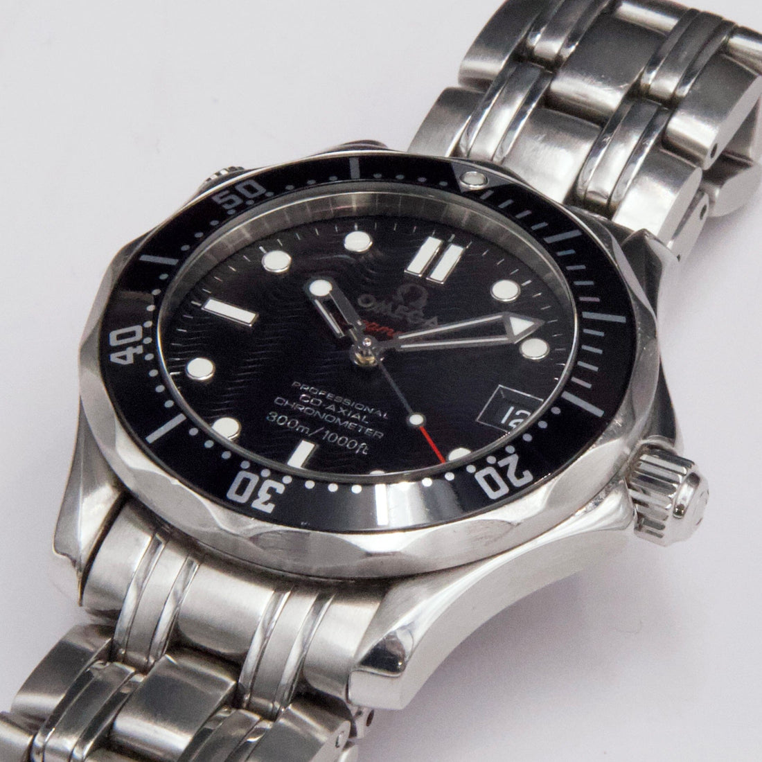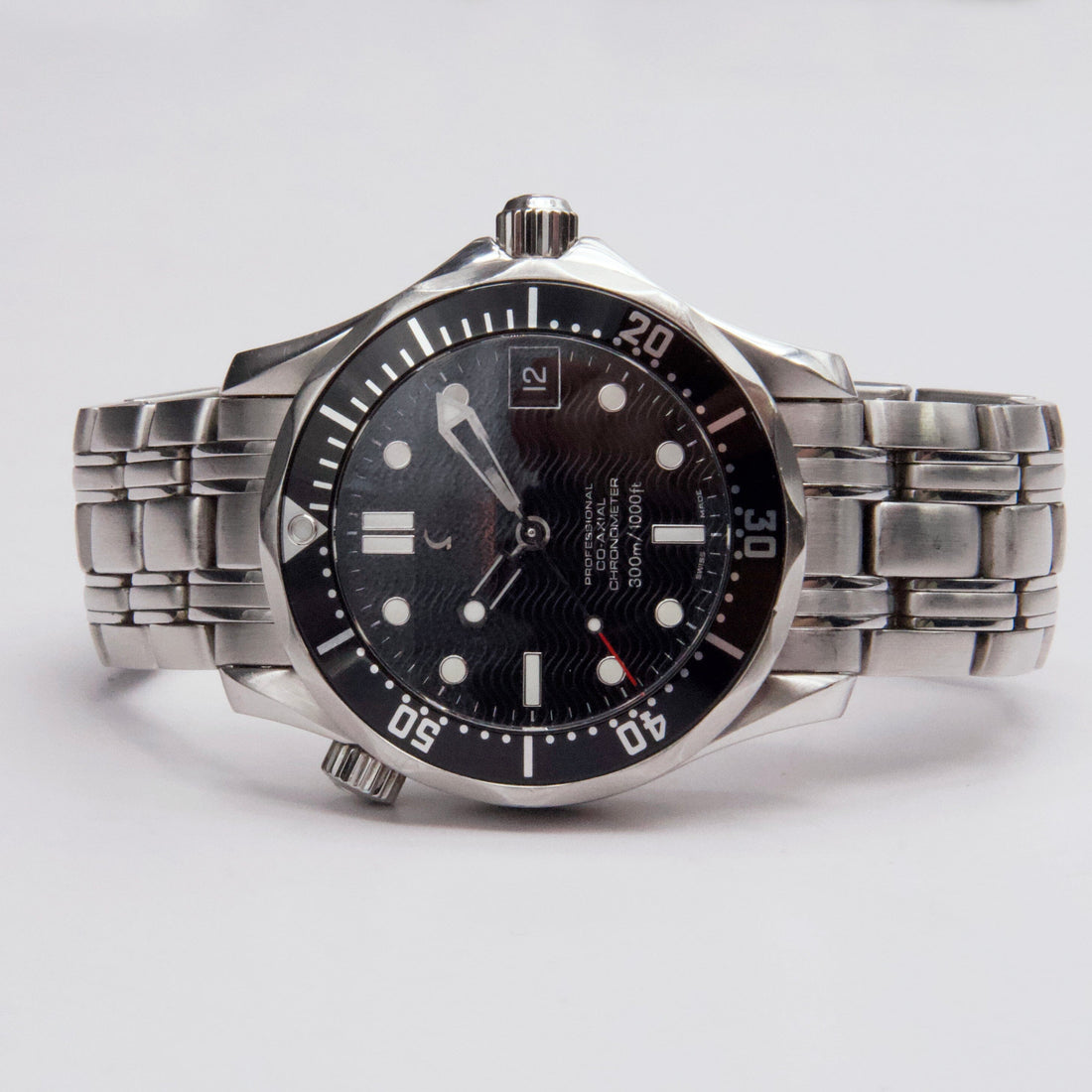 Omega Seamaster Professional 212.30.36.20.01.001 Men Watch. 36.25mm stainless steel case. Stainless steel unidirectional rotating bezel. Black dial with luminous steel hands and dot hour markers. Minute markers on the outer dial. Date display at the 3 o'clock position. Stainless steel bracelet with a double push-button fold-over clasp. Will fit up to a 6-inch wrist. Sapphire crystal. Stainless steel case back. Automatic self-winding co-axial chronometer movement with a 48-hour power reserve. This watch comes with original Box and Papers.