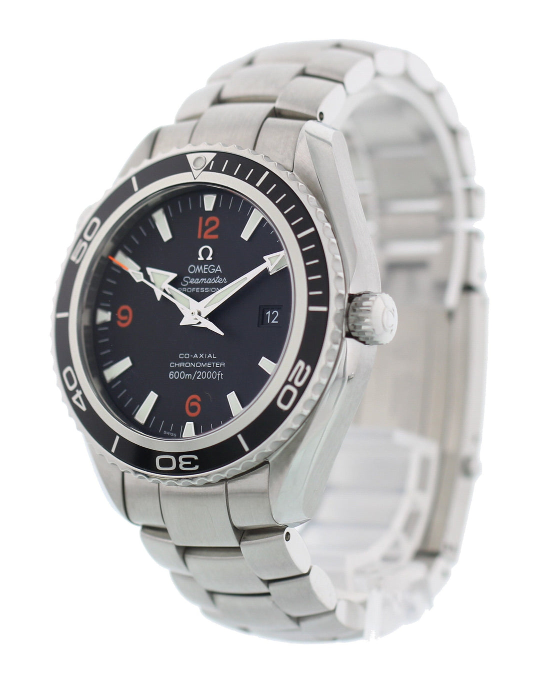 Omega Seamaster Professional Planet Ocean 2200.51.00 Stainless steel 45mm case. Stainless steel unidirectional rotating bezel. Black dial with date display and luminous hands and markers. Stainless steel band with a double push button fold over clasp that will fit up to a 6.5 inch wrist. Automatic Co-axial chronometer movement. Water resistant 600m/2000ft. Sapphire crystal glass. This watch is backed by our two year warranty.