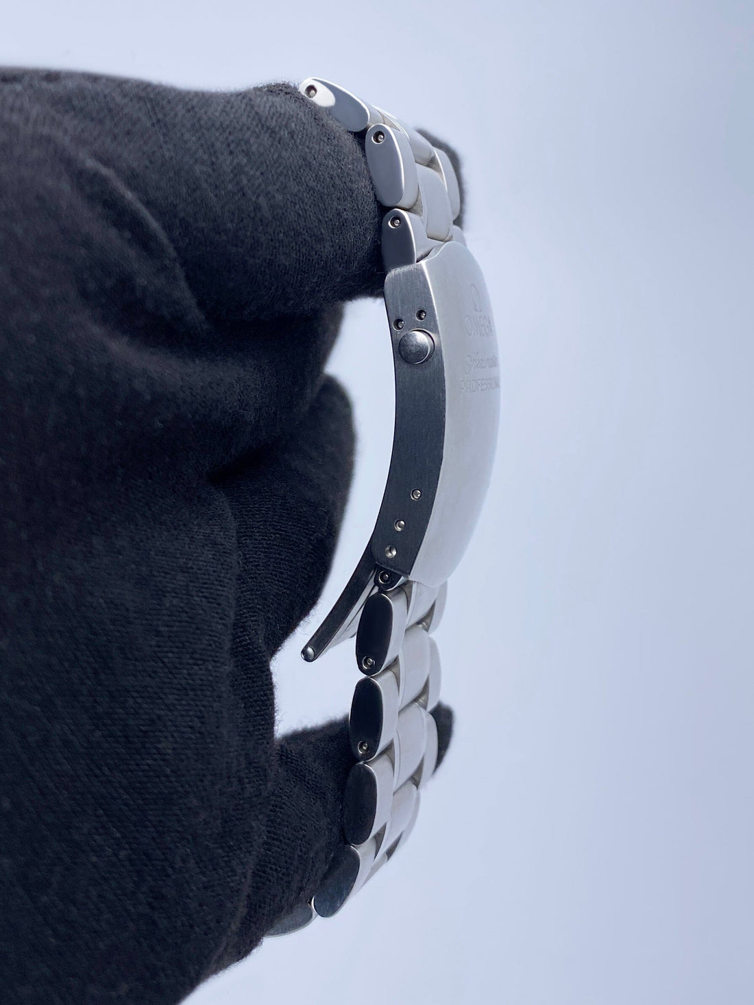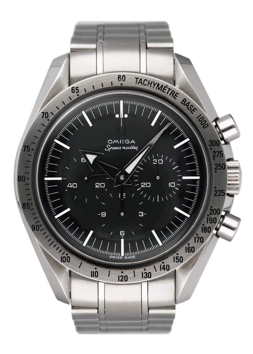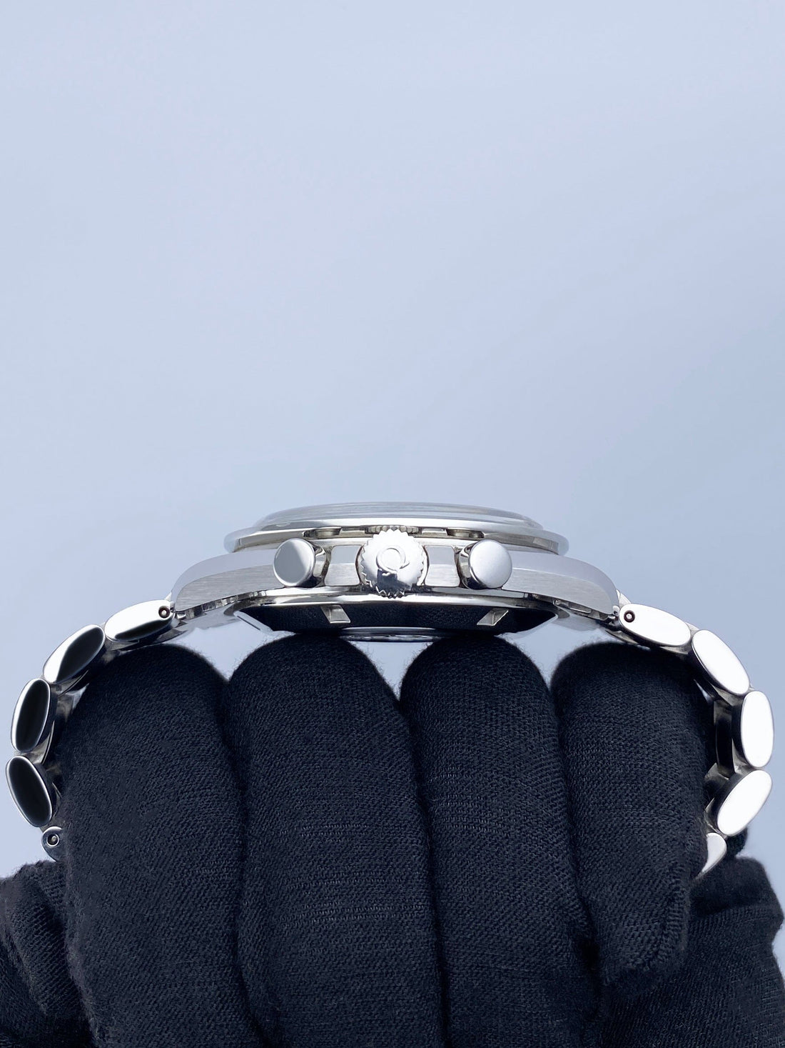 Omega Omega Speedmaster 3594.50.00 Mens Watch. 42mm stainless steel case. Stainless steel tachymeter bezel. Black dial with steel hands and index hour markers. Three sub-dials. Small seconds hand at 9 o'clock. 30-minute counter at 3 o'clock. 12-hour counter at 6 o'clock. Minute markers on the outer dial. Stainless steel bracelet with fold over clasp with double push button safety. Will fit up to a 6.75-inch wrist. Acrylic crystal. Stainless steel case back. Mechanical hand-winding movement.