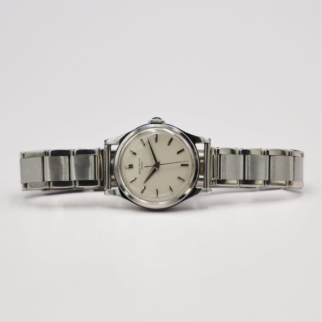 Patek Philippe Calatrava 2508A Mens Watch. 35.00mm stainless steel case. stainless steel bezel. Silver dial and index hour markers. bracelet with stainless steel fold over clasp. Will fit up to 6.50-inch wrist. Acrylic crystal. Stainless steel case back. Mechanical hand winding movement.