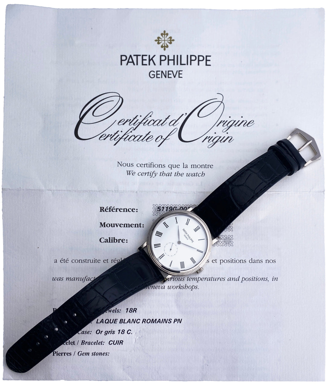 Patek Philippe Calatrava 5119G Mens Watch With Papers