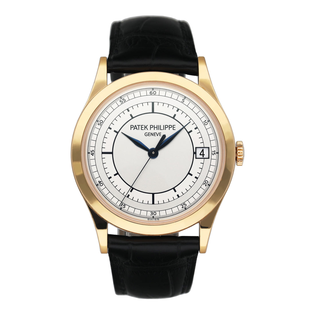 Patek Philippe Calatrava 5296R-001 Mens Watch. 38mm 18K rose gold case. 18K rose gold smoothed bezel. Silver dial with pink hands and index hour markers. The date is displayed at 3 o'clock position. Black leather Patek strap with 18K rose gold buckle. Will fit up to a 7.5-inch wrist. Sapphire crystal. Transparent sapphire crystal case back. Automatic self-winding movement. This watch comes with original Box and Papers.