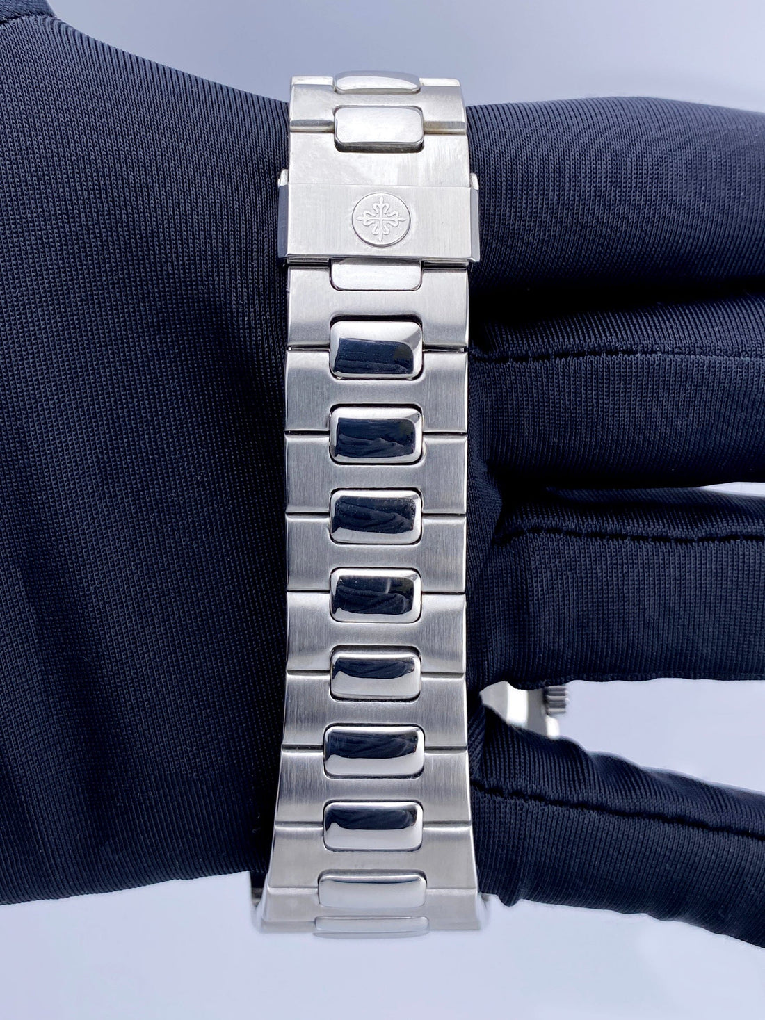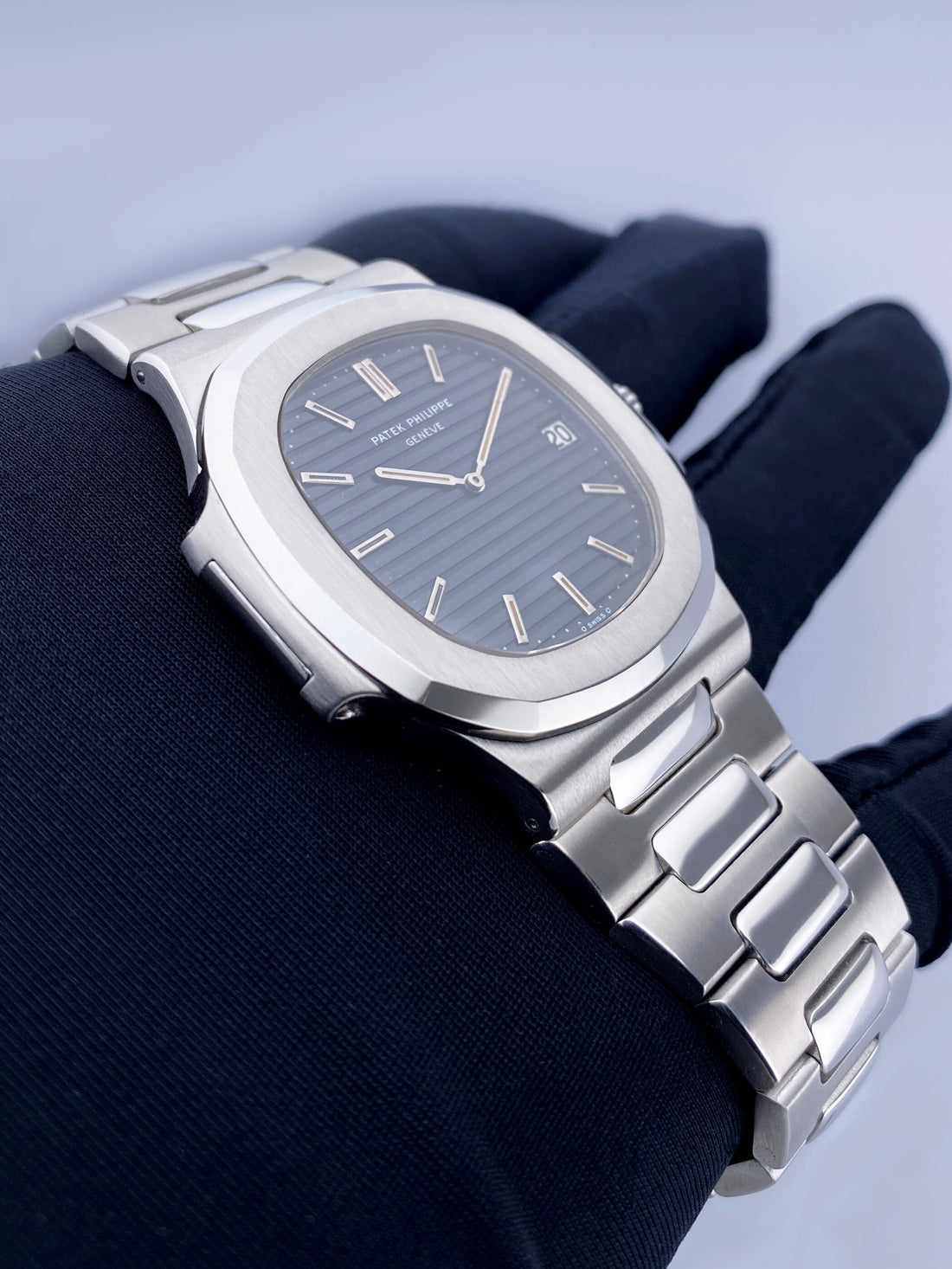 Patek Philippe Nautilus 3700/1A Mens Watch. 42mm stainless steel case. Stainless steel bezel. Blue dial with silver-tone hands and index hour marker. Date display at 3 o'clock position. Stainless steel bracelet with stainless steel fold over clasp with safety. Will fit up to 7-Inch wrist. Sapphire crystal. Stainless steel case back. Automatic self winding movement. This watch comes with original Certificate Papers.