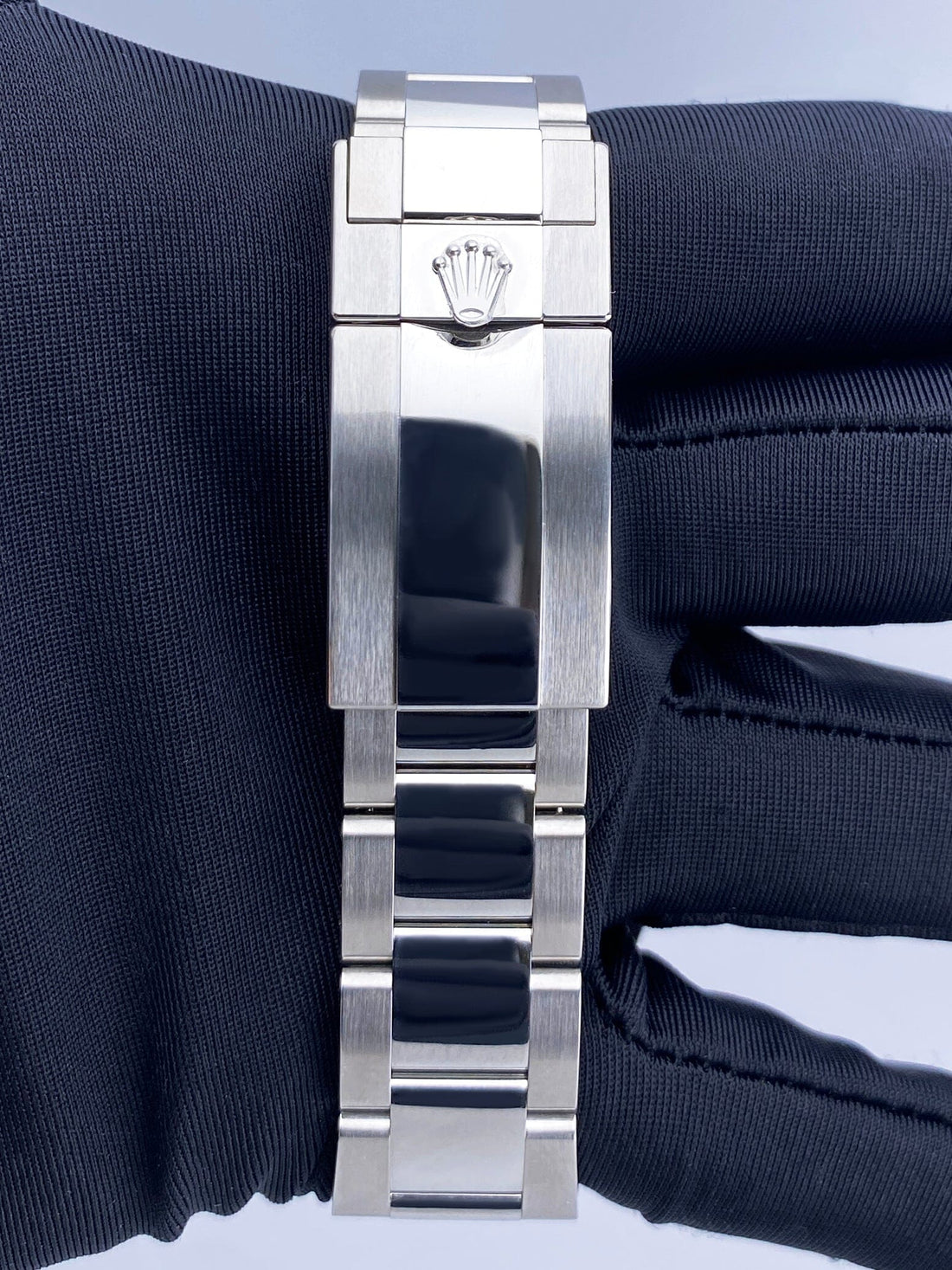 Rolex Cosmograph Daytona 126500LN Mens Watch. 40mm stainless steel case. Black ceramic bezel with tachymetric scale. Black dial with luminous steel hands and index hour markers. Minute markers on the outer dial. Three sub-dials. Small seconds hand at 6 o'clock. 30-minute counter at 3 o'clock. 12-hour counter at 9 o'clock. Stainless steel Oyster bracelet with fold over clasp with safety. Will fit up to a 7.5-inch wrist. Sapphire crystal. Stainless steel case back. Caliber 4131 Automatic self-winding chronometer movement with a 72-hour power reserve. This watch comes with original Box and Papers.