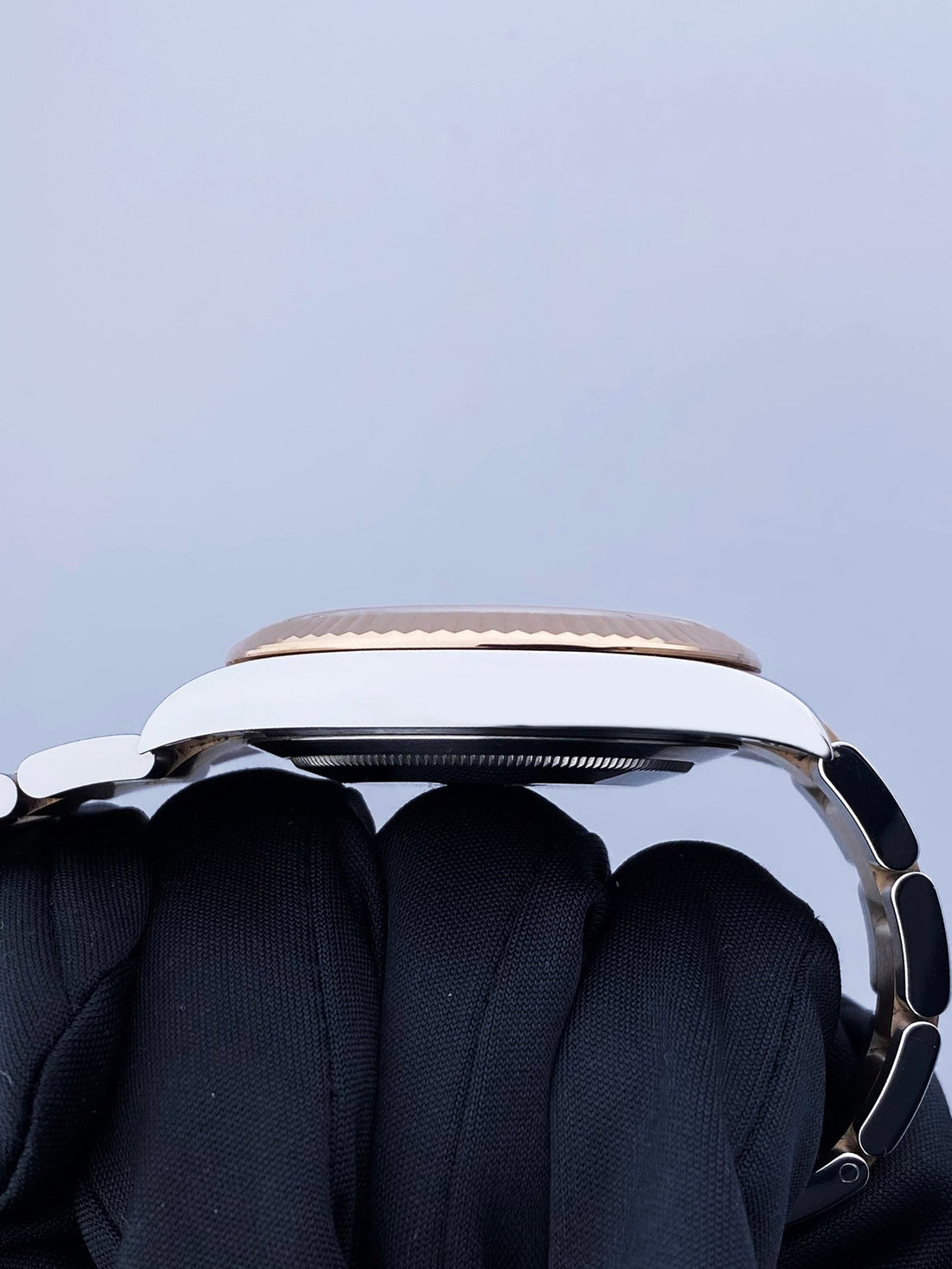 Rolex Oyster Perpetual Datejust 41 126331 Mens Watch. 41mm stainless steel case with 18K rose gold fluted bezel. Chocolate dial with luminous rose gold hands and luminous index hour marker. Date display at the 3 o'clock position. Stainless steel & 18K rose gold Oyster bracelet with fold-over clasp. Will fit up to 7.5-Inch wrist. Sapphire crystal. Stainless steel case back. Calibre 3235 automatic self-winding movement. This will come with Box and Papers.