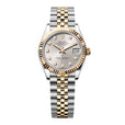 Rolex Datejust 278273 Ladies Watch. 31mm stainless steel case. 18K yellow gold fluted bezel. Silver dial with gold hands and factory diamond hour markers. Minute markers on the outer dial. Date display at the 3 o'clock position. Stainless steel & 18K yellow gold Jubilee bracelet with fold over clasp. Will fit up to a 6.5-inch wrist. Sapphire crystal. Stainless steel case back. Automatic self-winding movement. This watch comes with original Box and Papers.
