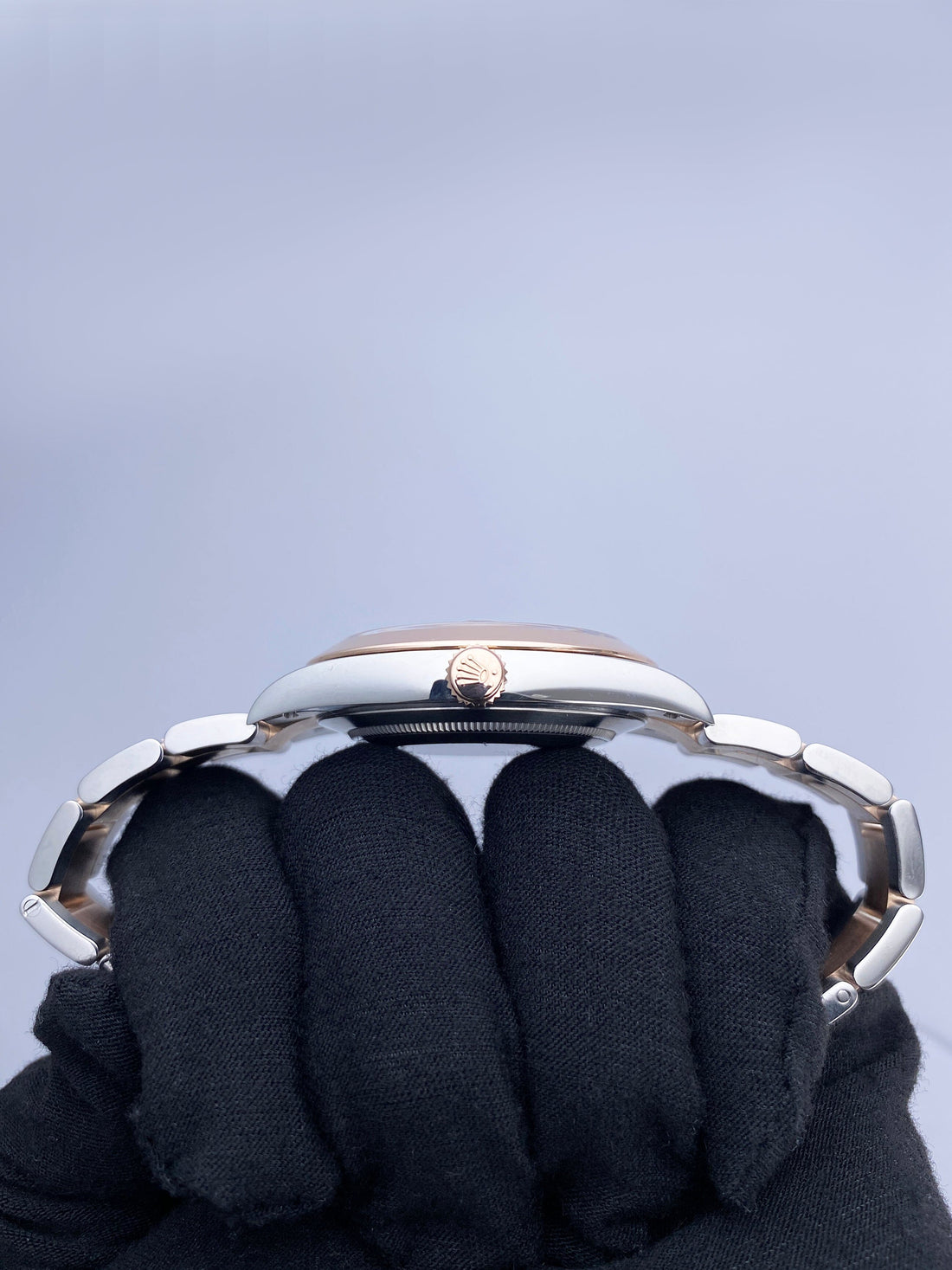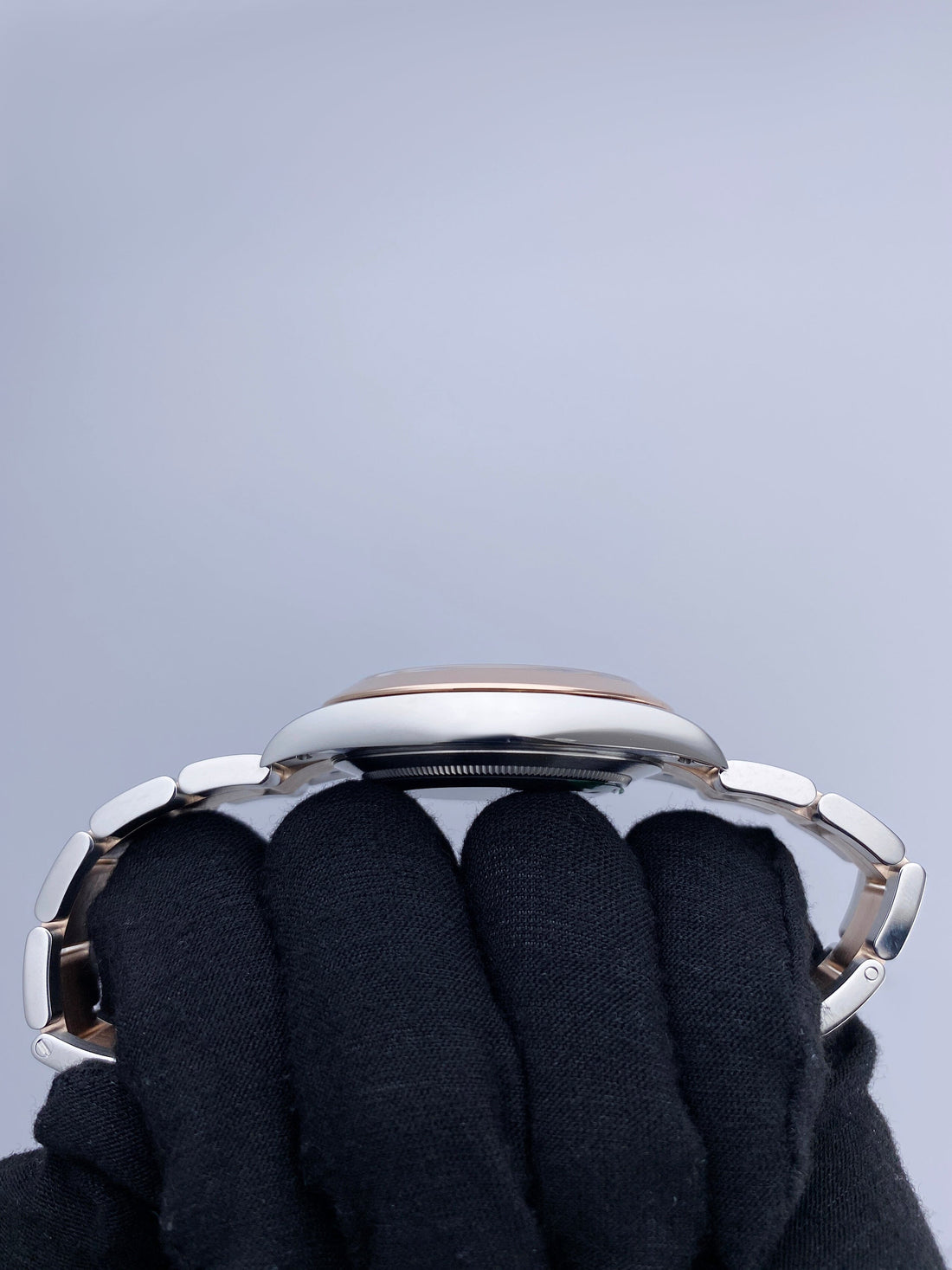 Rolex Oyster Perpetual Datejust 41 126301 Mens Watch. 41mm stainless steel case. 18K rose gold smoothed bezel. Chocolate dial with luminous rose gold hands and luminous index hour marker. Date display at the 3 o'clock position. Stainless steel & 18K rose gold Oyster bracelet with fold-over clasp. Will fit up to 7.5-Inch wrist. Sapphire crystal. Stainless steel case back. Calibre 3235 automatic self-winding movement. This will come with Box and Papers.