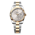 Rolex Datejust 41 126333 Mens Watch. 41mm stainless steel case with 18K yellow gold fluted bezel. Silver dial with gold hands and index hour index marker. Engraved rehaut. Date display at the 3 o'clock position. Minute markers on the outer dial. 18K yellow gold & stainless steel Oyster bracelet with fold over clasp. Will fit up to 7.5-inch wrist. Sapphire crystal. Stainless steel case back. Automatic self-winding movement. This watch comes with original Box and Papers.
