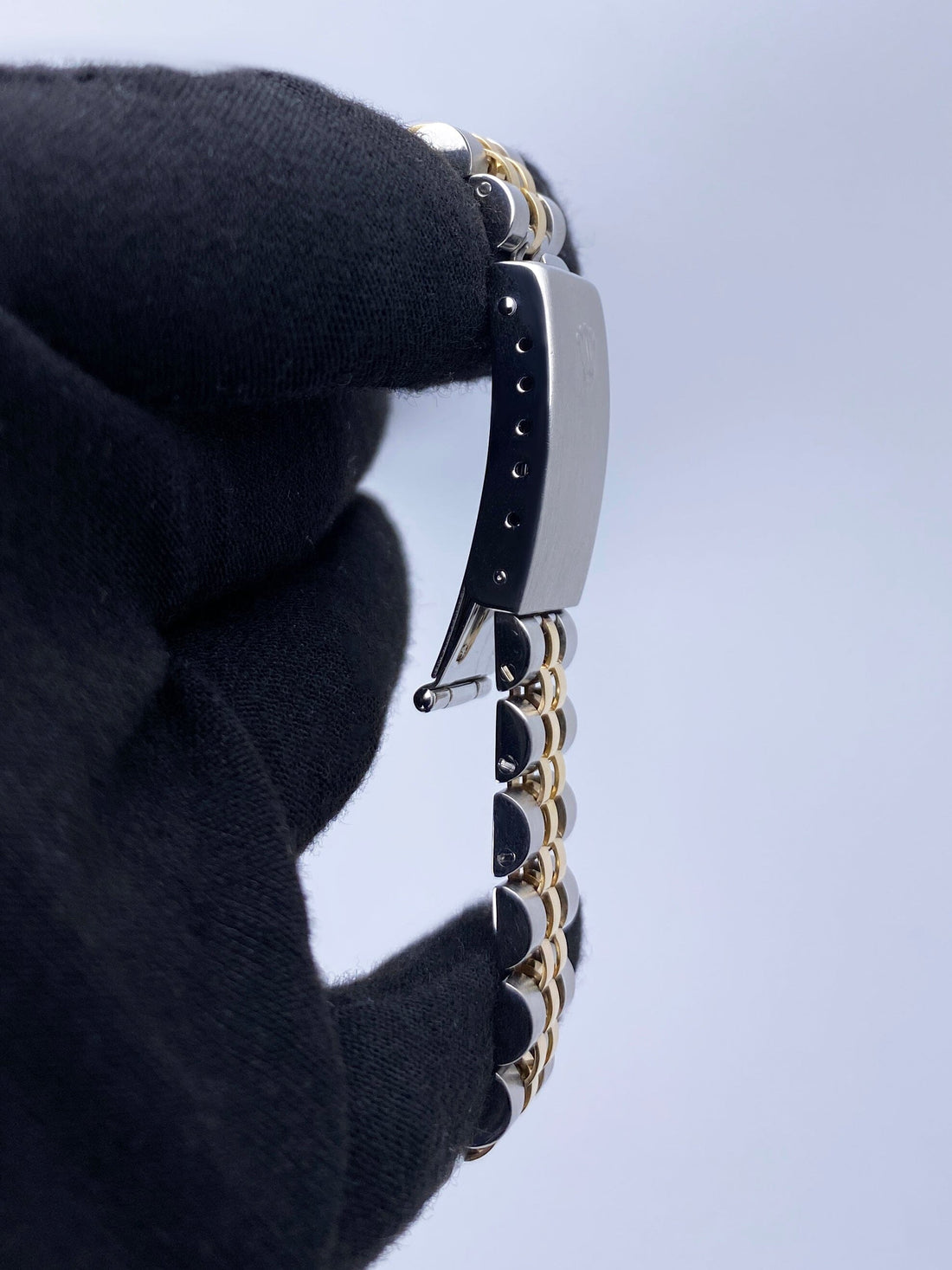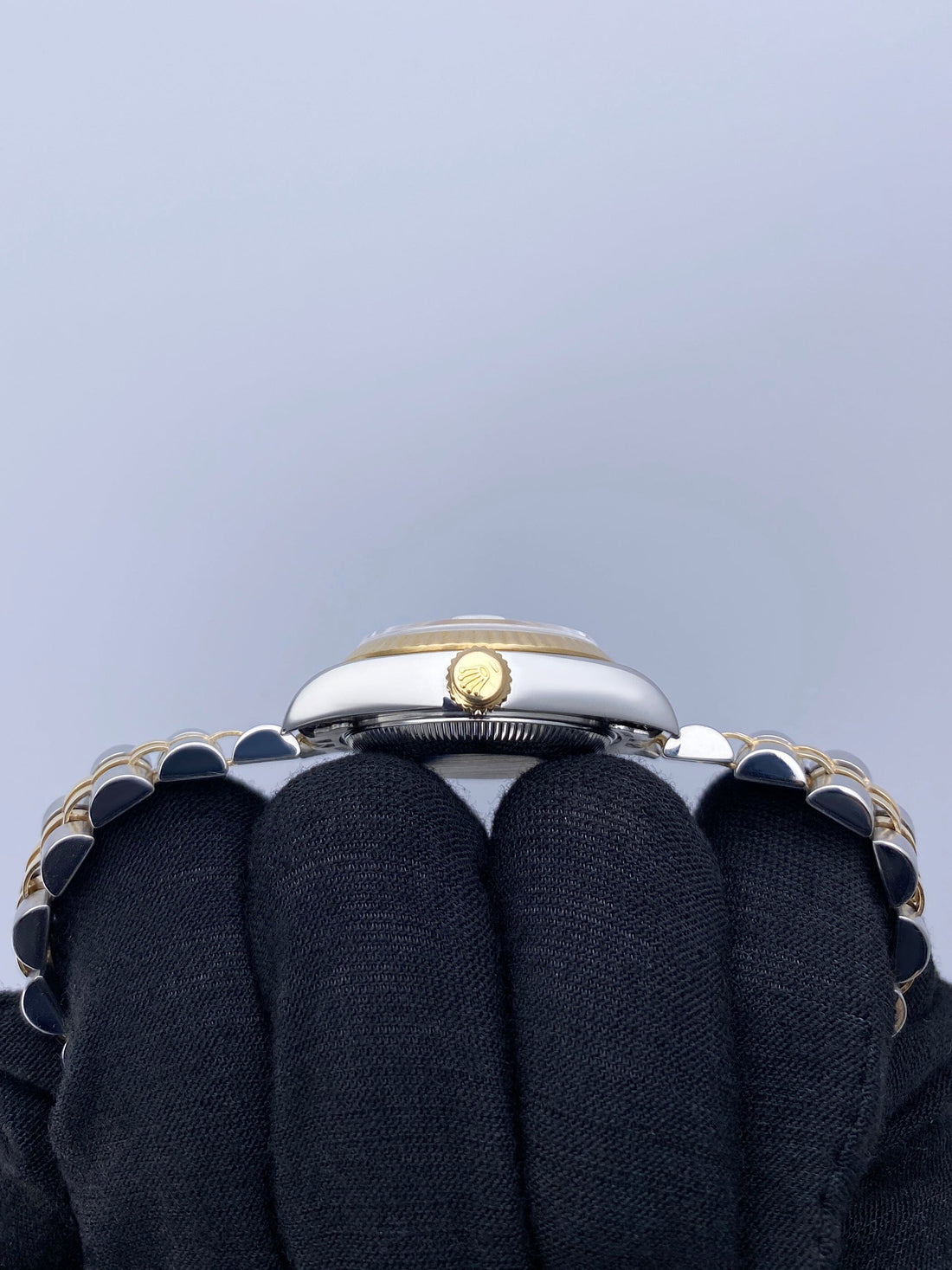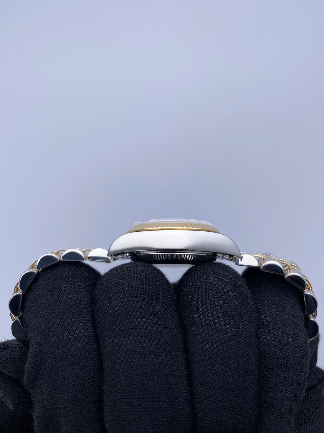 Rolex Datejust 79173 Ladies Watch. 26mm Stainless Steel case with 18K yellow gold fluted bezel. White dial with gold hands and Roman numeral hour marker. Date display at the 3 o'clock position. Stainless steel & 18K yellow gold jubilee bracelet with fold over clasp. Will fit up to a 6-inch wrist. Sapphire crystal. Stainless steel case back. Automatic self-winding movement.