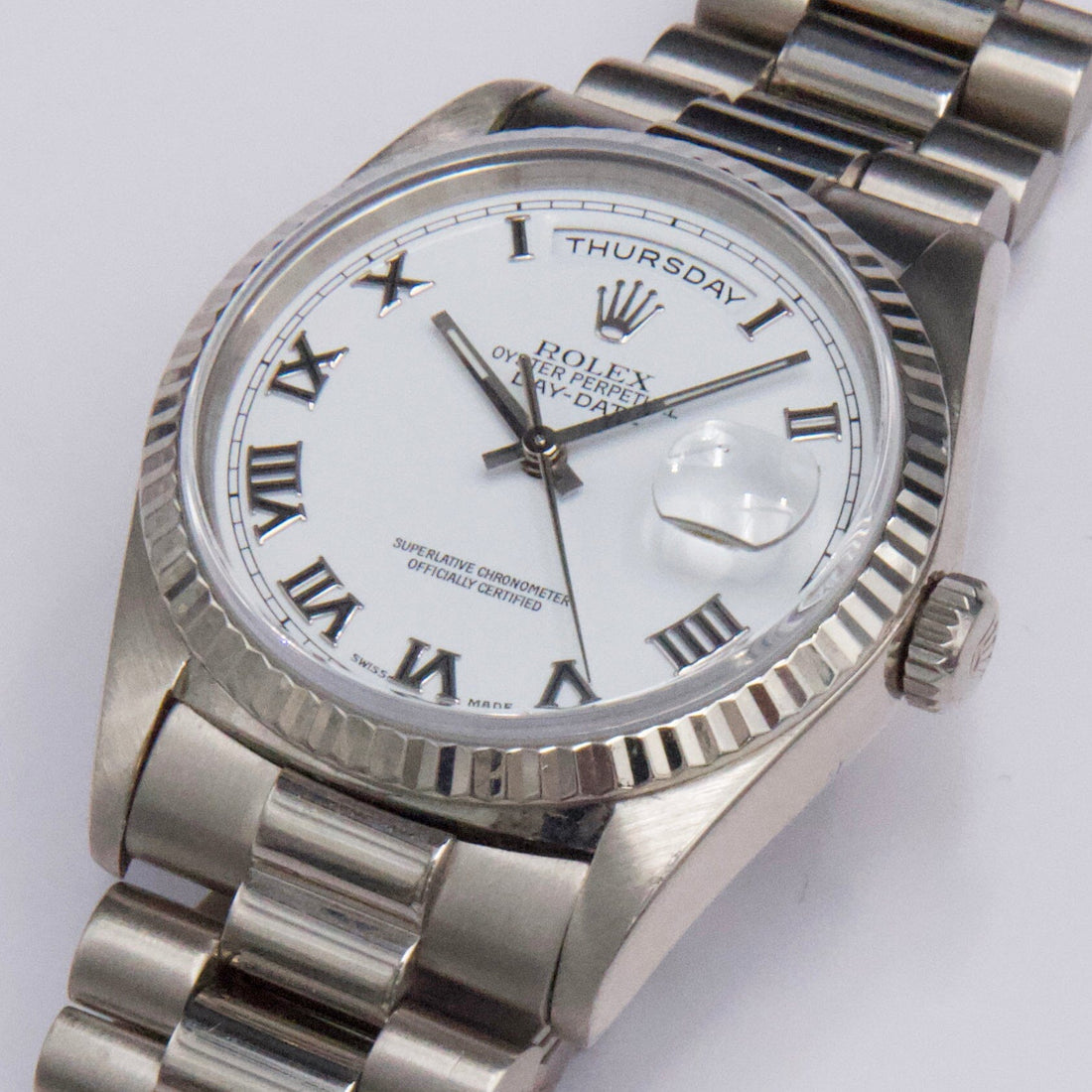 Rolex Day Date 18239 White Roman Dial Mens Watch With Box