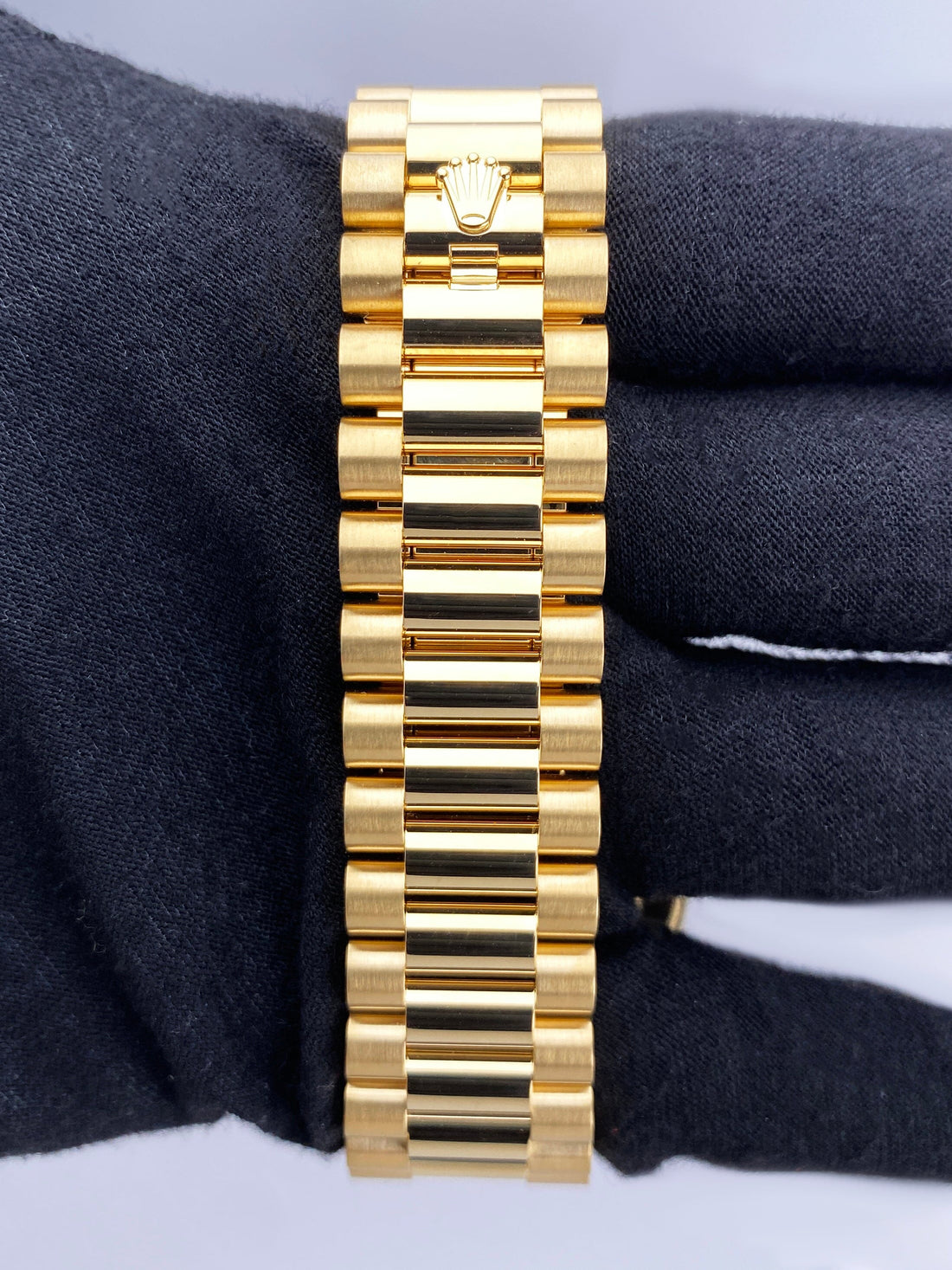 Rolex Day-Date 228238 Mens watch. 40mm 18K yellow gold case, 18K yellow gold fluted bezel. Green dial with gold hands and Roman numeral hour marker. Day display at 12 o'clock and date display at 3 o'clock position. 18K yellow gold President bracelet with 18K yellow gold hidden fold over clasp. Will fit up to a 7.5-inch wrist. Sapphire crystal. 18K yellow gold case back. Automatic self-winding movement with up to 70 hours power reserve. This watch comes with original Box and Papers.