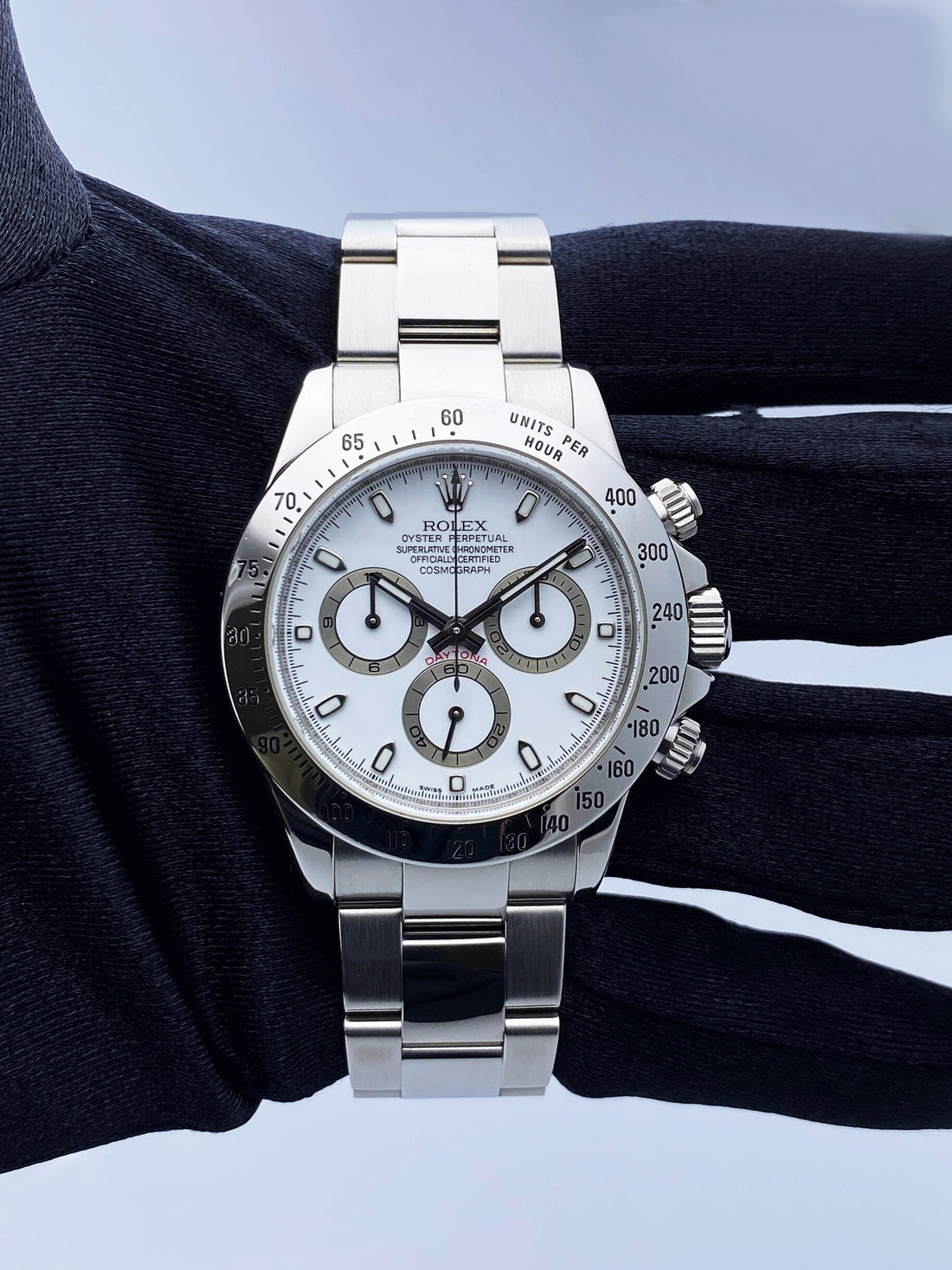 Rolex Daytona 116520 White Dial Stainless Steel Mens Watch Box Papers