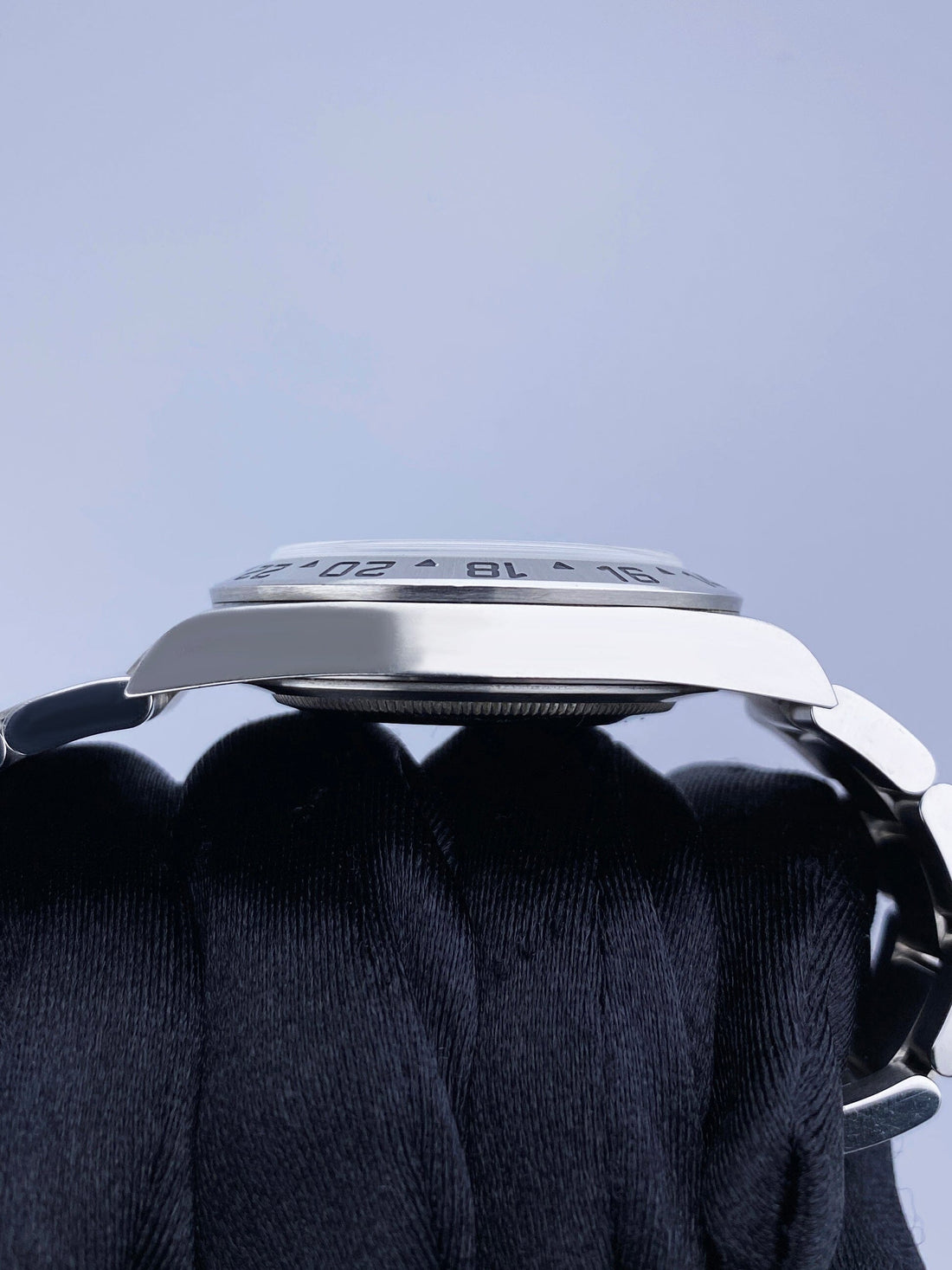 Rolex Explorer II 16570 Mens Watch. 40mm stainless steel case with stainless steel bezel. White dial with black luminous steel hands and index hour markers. Minute markers on the outer dial. Date display at the 3 o'clock position. Stainless steel Oyster bracelet with fold over clasp with safety. Will fit up to a 75-inch wrist. Sapphire crystal. Stainless steel case back. Automatic self-winding movement.
