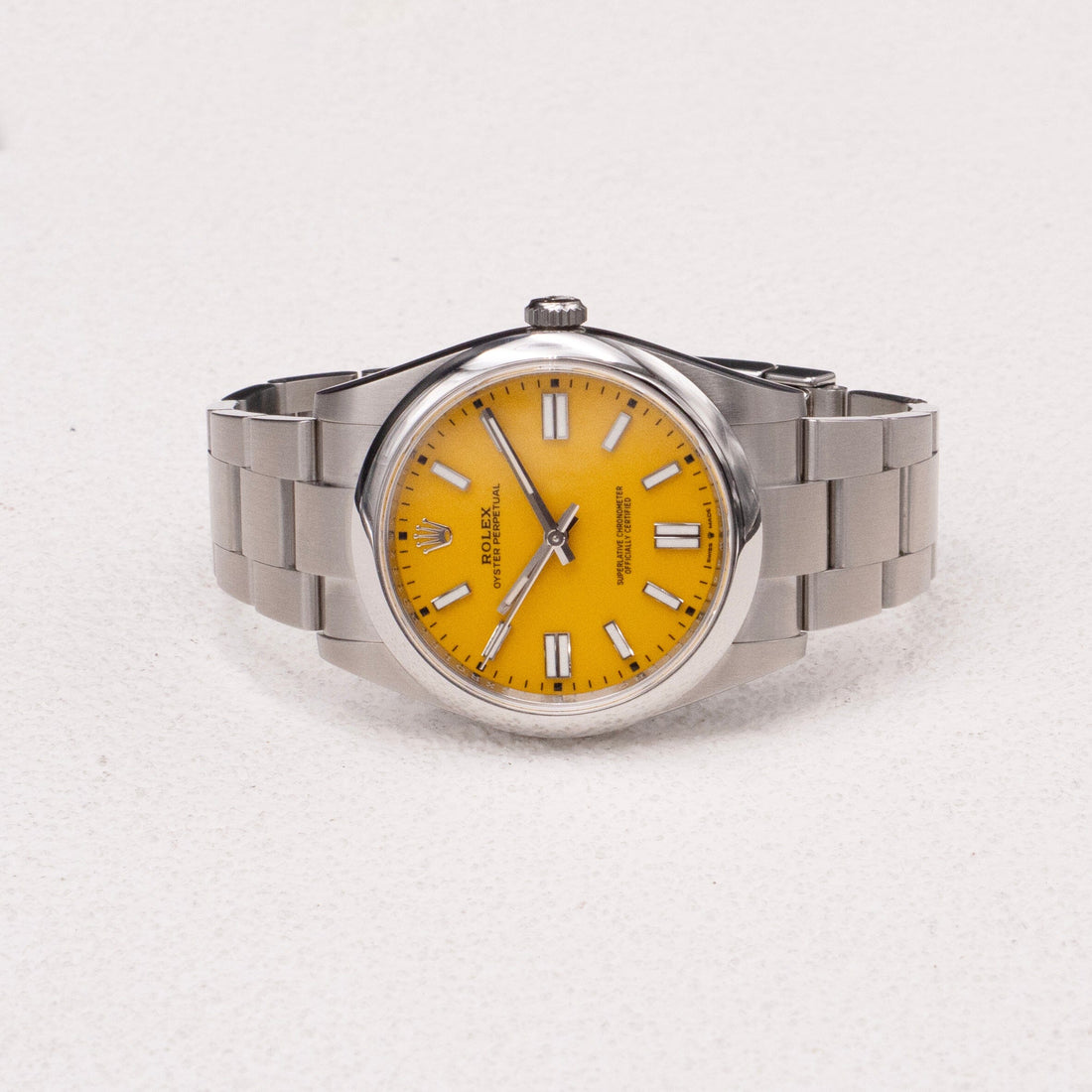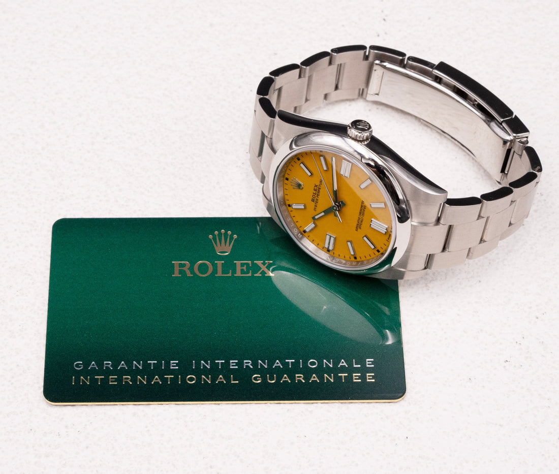 Rolex Oyster Perpetual 124300 Yellow Dial Mens Watch Box & Papers