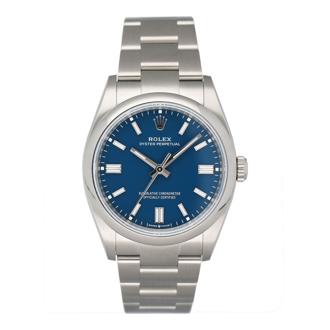 Rolex Oyster Perpetual 126000 Med Blue Dial Mens Watch Box Papers