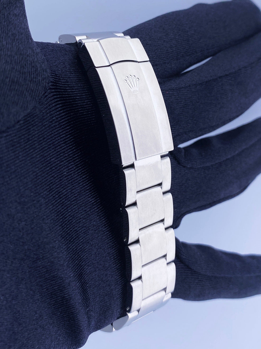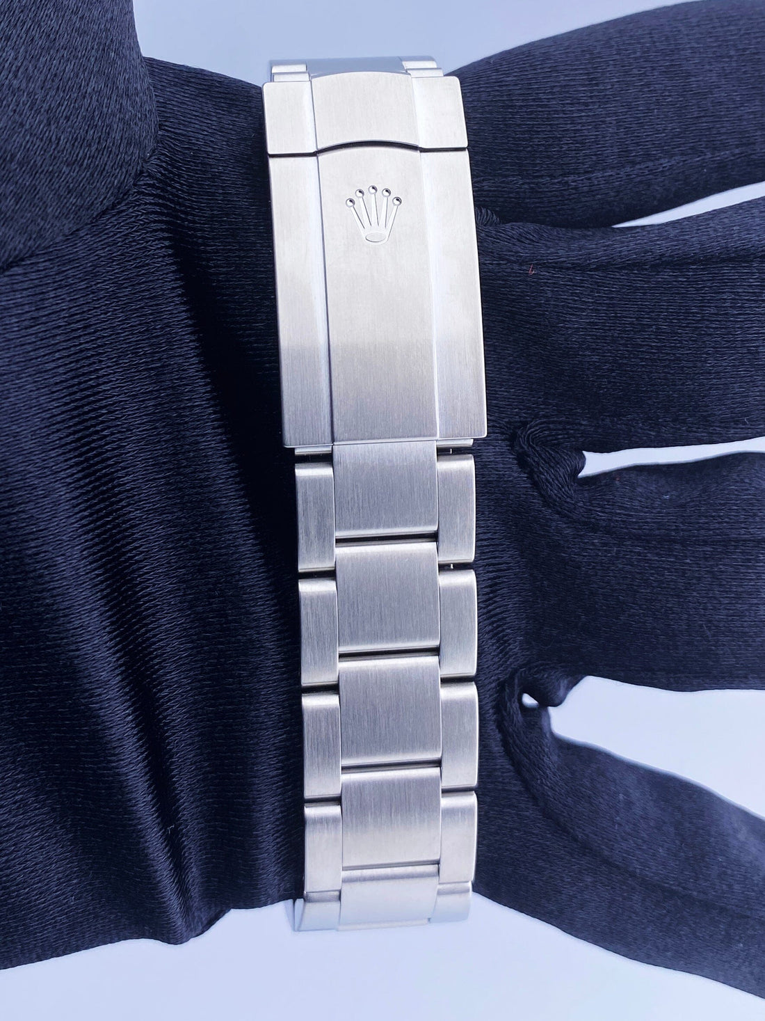 Rolex Oyster Perpetual Air King 116900 Mens Watch. 40mm Stainless Steel case. Stainless Steel smooth bezel. Black dial with Luminous Steel hands and Arabic numeral hour and minute markers. Stainless Steel Bracelet with Fold Over Clasp. Will fit up to a 7-inch wrist. Sapphire Crystal, Stainless steel case back. Calibre 3131 Automatic self-winding chronometer movement with a 48-hour power reserve.
