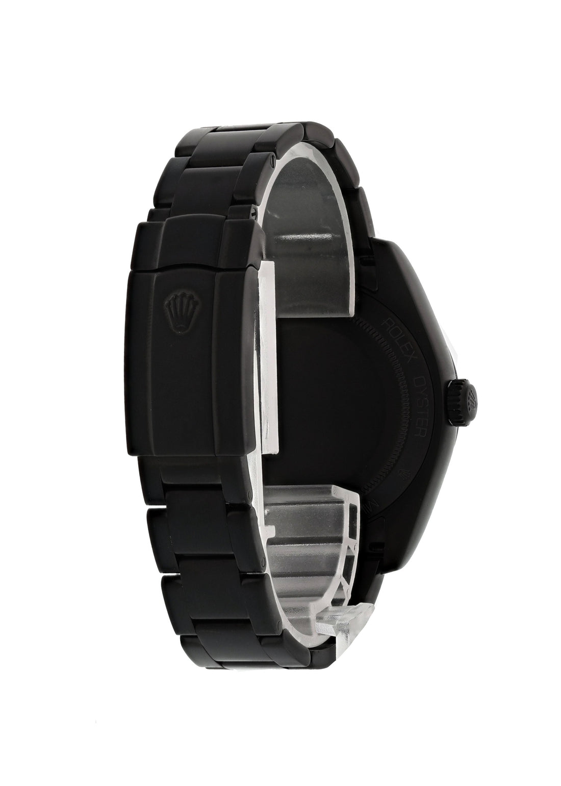 Rolex Oyster Perpetual Milgauss 116400 Custom PVD Mens Watch. 40mm PVD case and smooth fixed bezel. Black dial with luminous silver-tone hands and index hour markers. Minute markers around the outer dial. Custom PVD Oyster Bracelet fold over clasp with safety lock. Will fit up to a 7-inch wrist. Sapphire crystal. Calibre 3131 automatic self-winding movement with 48 hours of power reserve.