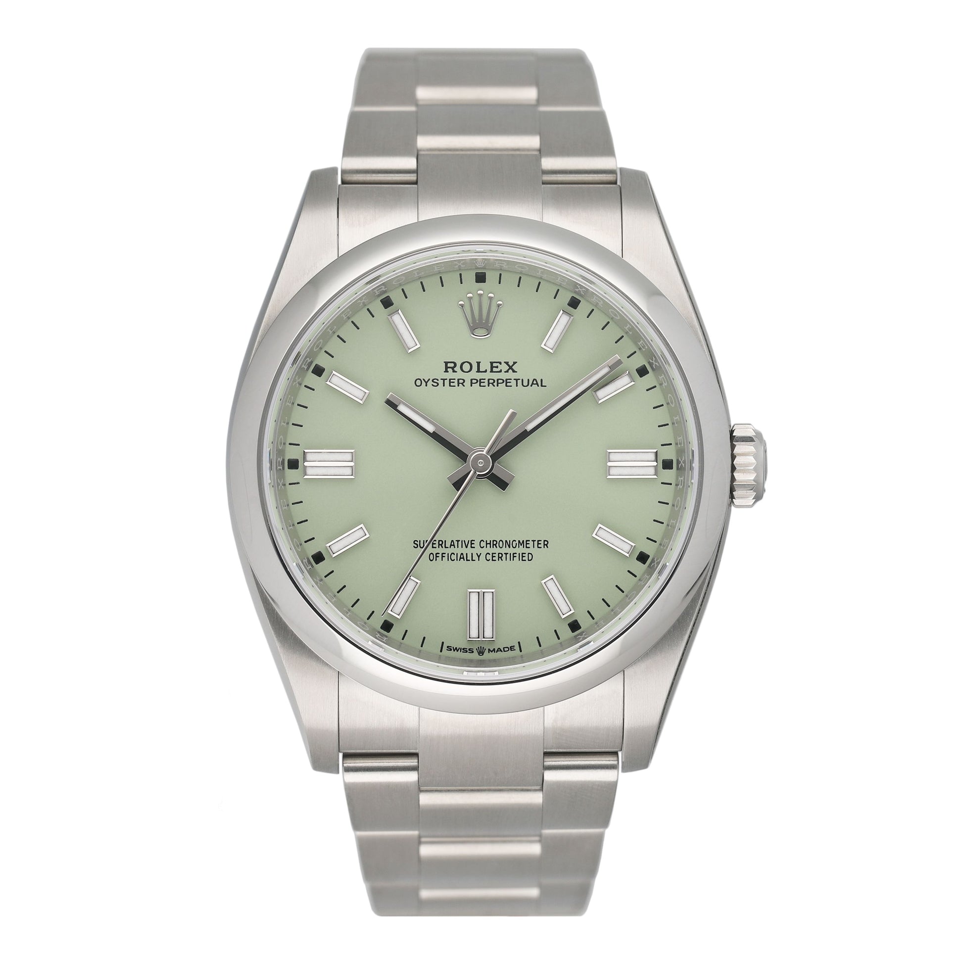 Rolex Oyster Perpetual Pistachio Dial 126000 Mens Watch Box Papers