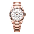 Rolex Sky-Dweller 336935 Mens Watch. 42mm 18K rose gold case. 18K rose gold fluted bezel. White dial with luminous rose gold hands and index hour markers. Minute markers on the outer dial. Date display at the 3 o'clock position. GMT 24 hour sub-dial. 18K yellow gold Oyster bracelet with fold over clasp. Will fit up to a 7.5-inch wrist. Sapphire crystal. 18K rose gold case back. Automatic self-winding chronometer movement with a 72-hour power reserve. This watch come with original Box and Papers.