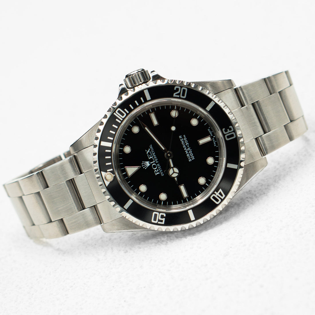 Rolex Oyster Perpetual Submariner 14060M Mens Watch. 40mm stainless steel case with unidirectional stainless steel bezel with black bezel insert. Black dial with luminous Mercedes hands and luminous index hour markers. Minute markers on the outer dial. Stainless steel Oyster bracelet with fold over clasp with safety. Will fit up to 7-Inch wrist. Sapphire crystal. Stainless steel case back. Automatic self-winding movement.