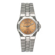 Vacheron Constantin Overseas 16050/423A Ladies Watch. 25mm stainless steel case. Stainless steel bezel. Salmon dial with luminous steel hands and index hour markers. Minute makers on the outer dial. Stainless steel bracelet with butterfly clasp with safety. Will fit up to 6-Inch wrist. Sapphire crystal. Stainless steel case back. Quartz: Battery powered movement.